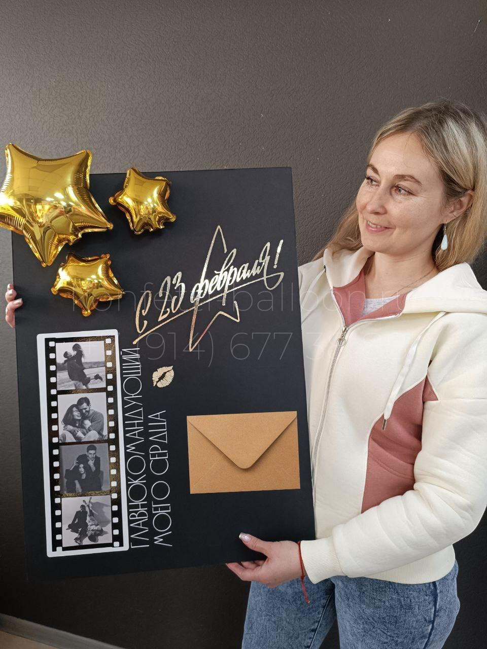 3Д открытка из шаров для мужчины на 23 февраля с поздравлением, фото и Вашими пожеланиями — отличный подарок или комплимент для Ваших близких.