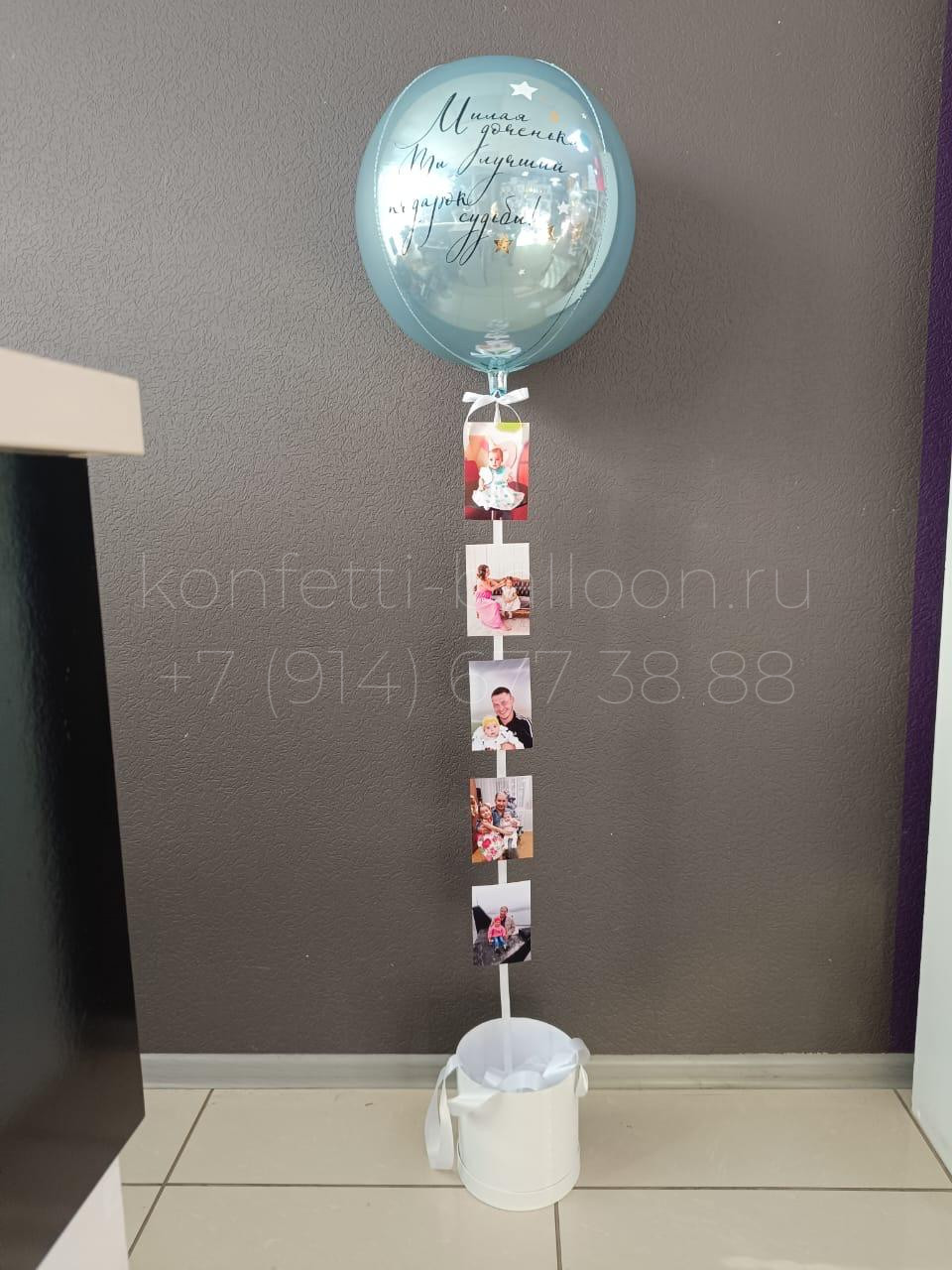 Баблобокс с фольгированной 3d сферой с фото для девочки
