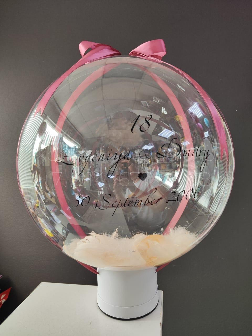 Шар Bubbles аналог 45-50 см с наполнением перья и индивидуальной надписью
