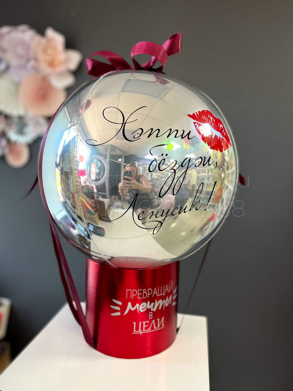 Баблобокс с фольгированной 3d сферой 45-50 см с индивидуальной надписью