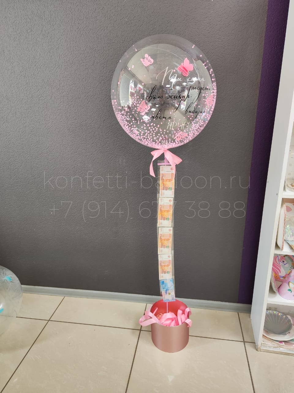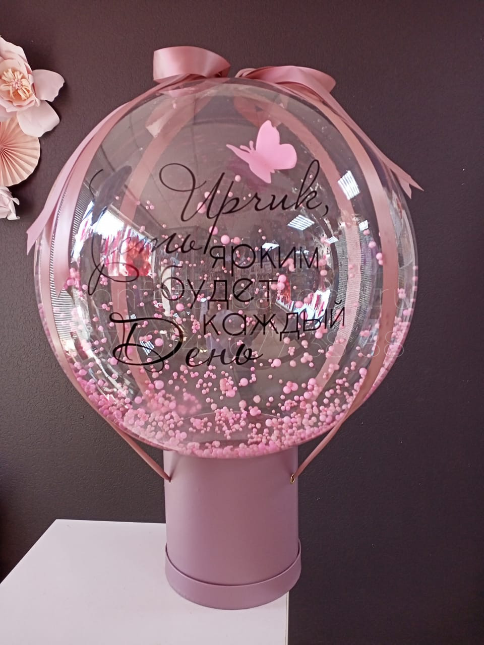 Баблобокс с шаром Bubbles (50-55 см) с пенопластом внутри и индивидуальной надписью. Возможен декор бумажные бабочки (+200 рублей)