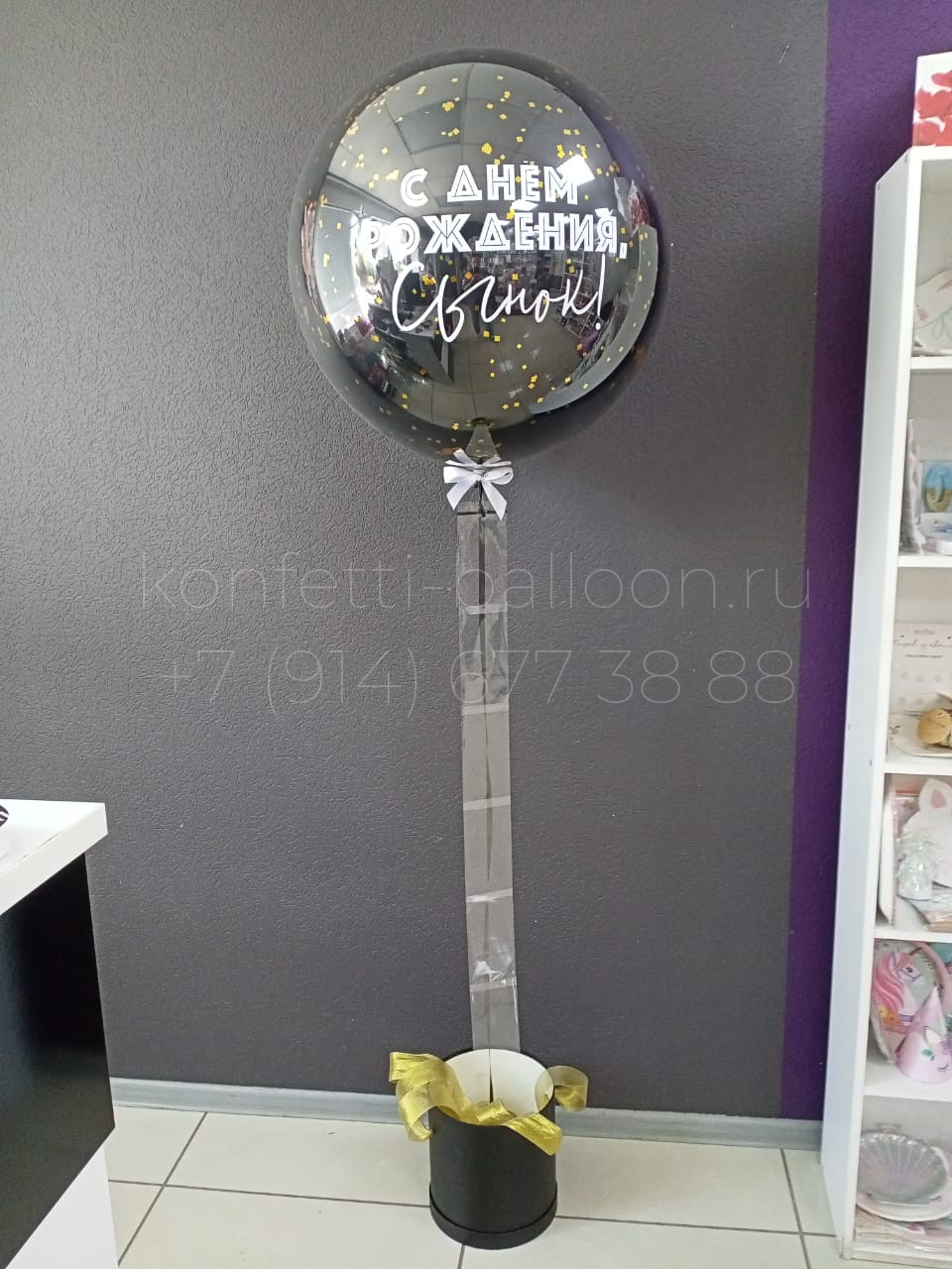 Баблобокс со стеклянным шаром-гигантом 60-65 см с индивидуальной надписью.