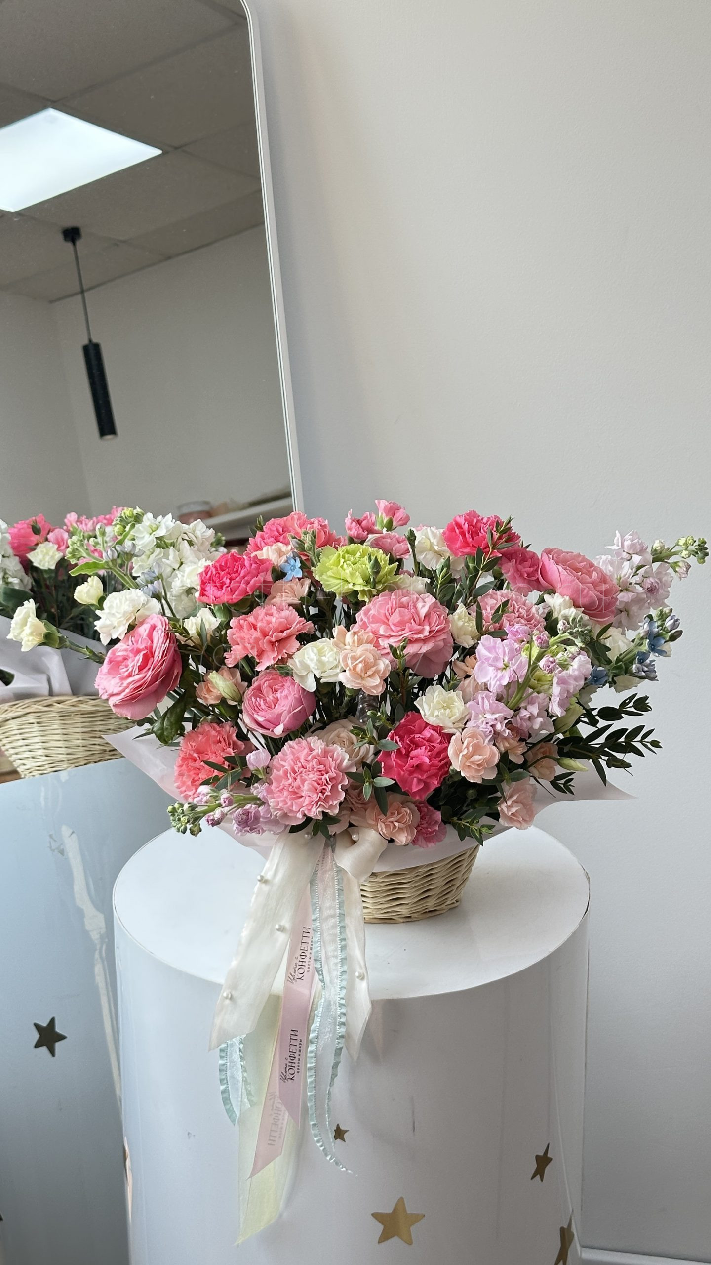 В состав «Бокс дофаминовый из микса цветов в корзинке» входит: