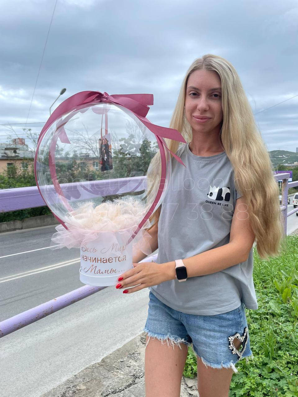 Бокс с шаром Bubbles и фото внутри с декором фатин для мамы