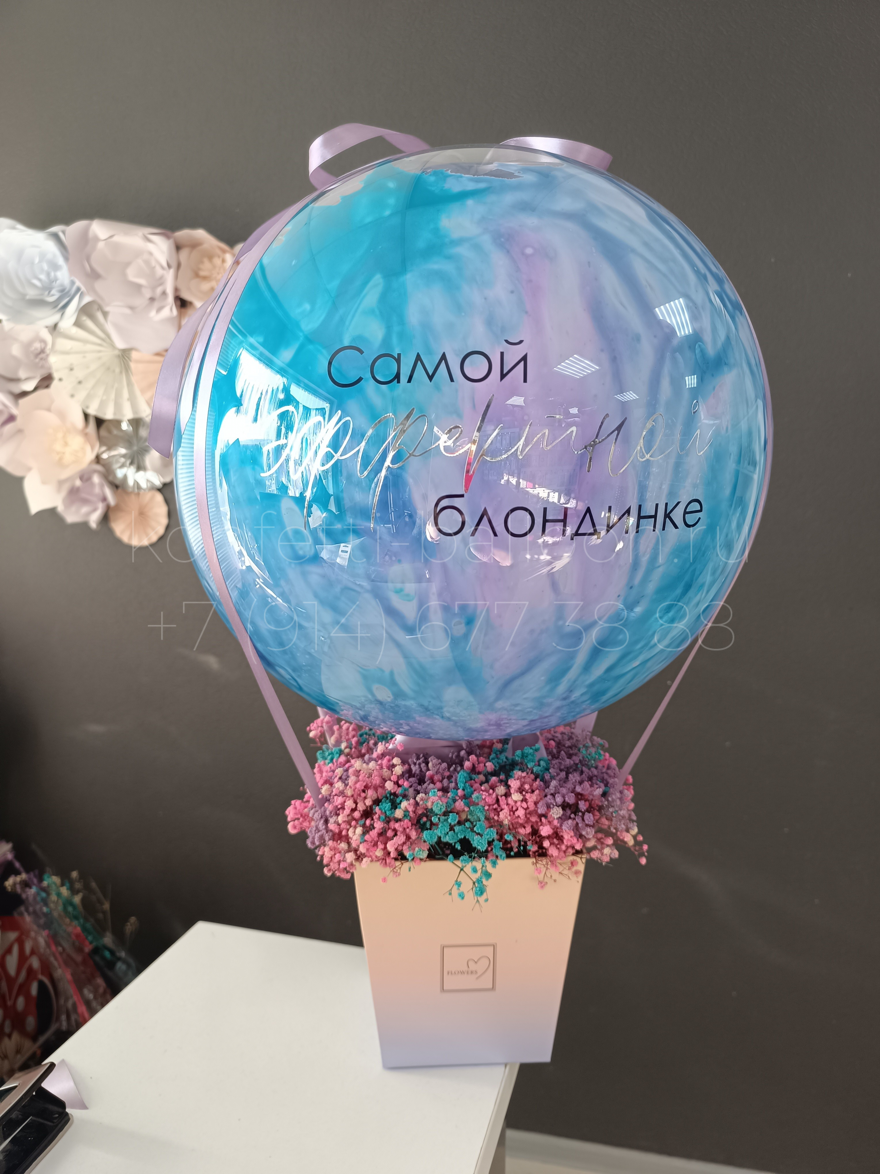 Бокс с гипсофилой и шаром Bubbles с краской и индивидуальной надписью – роскошный подарок на день рождения, свадьбу, выпускной, который не оставит равнодушным совершенно никого