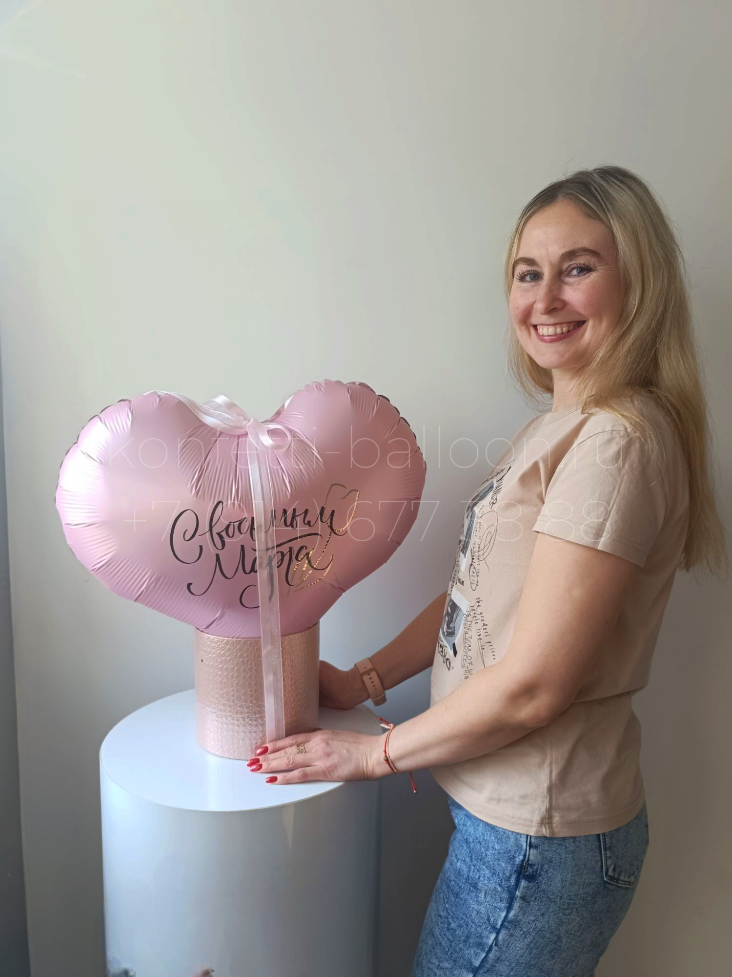 Баблобокс с сердцем оригинальной формы и фото С 8 Марта