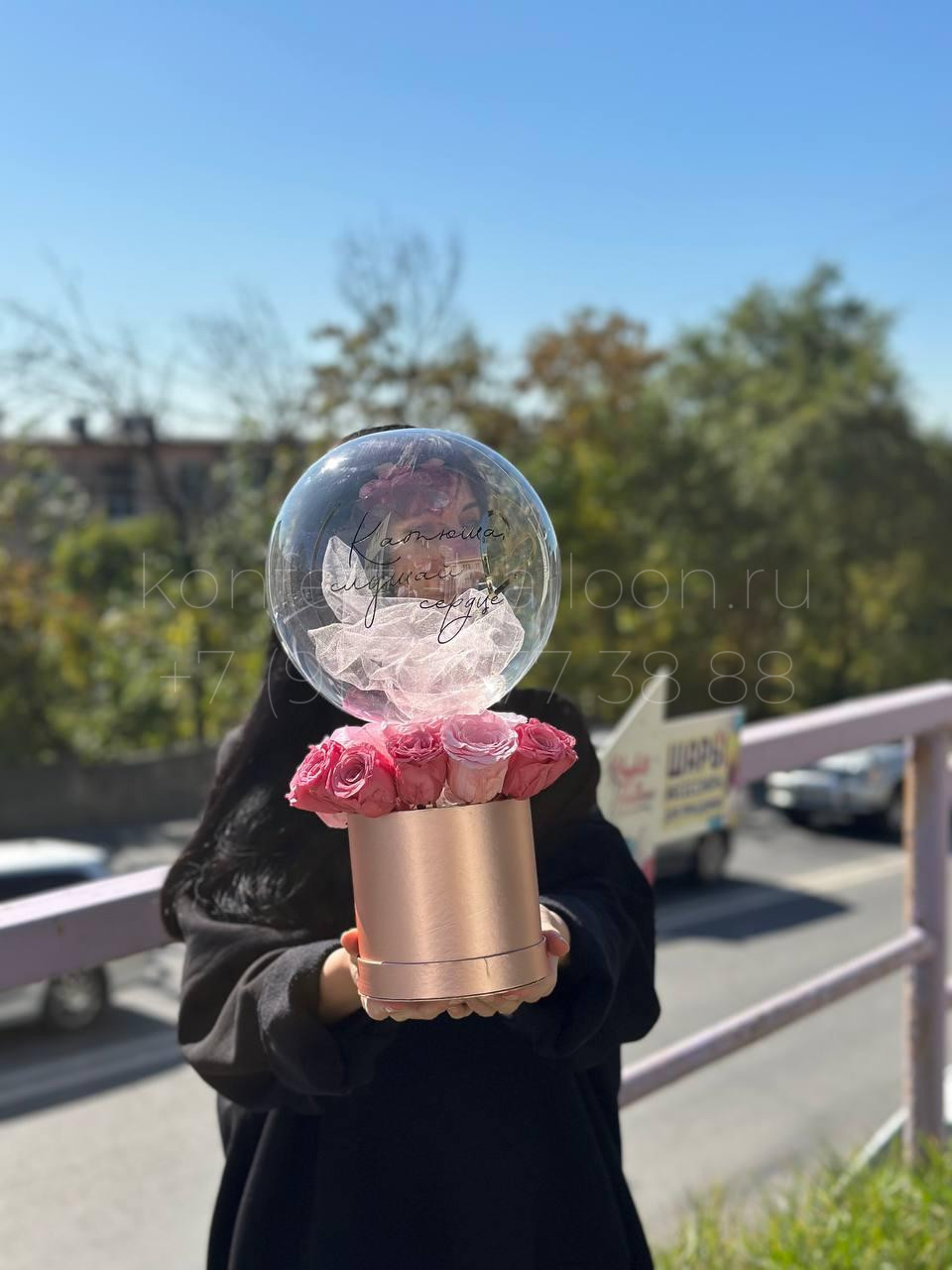 Средний бокс с розами и мини шаром Bubbles с индивидуальной надписью — роскошный подарок на день рождения, свадьбу, выпускной. Отличный подарок или комплимент для Ваших близких.
