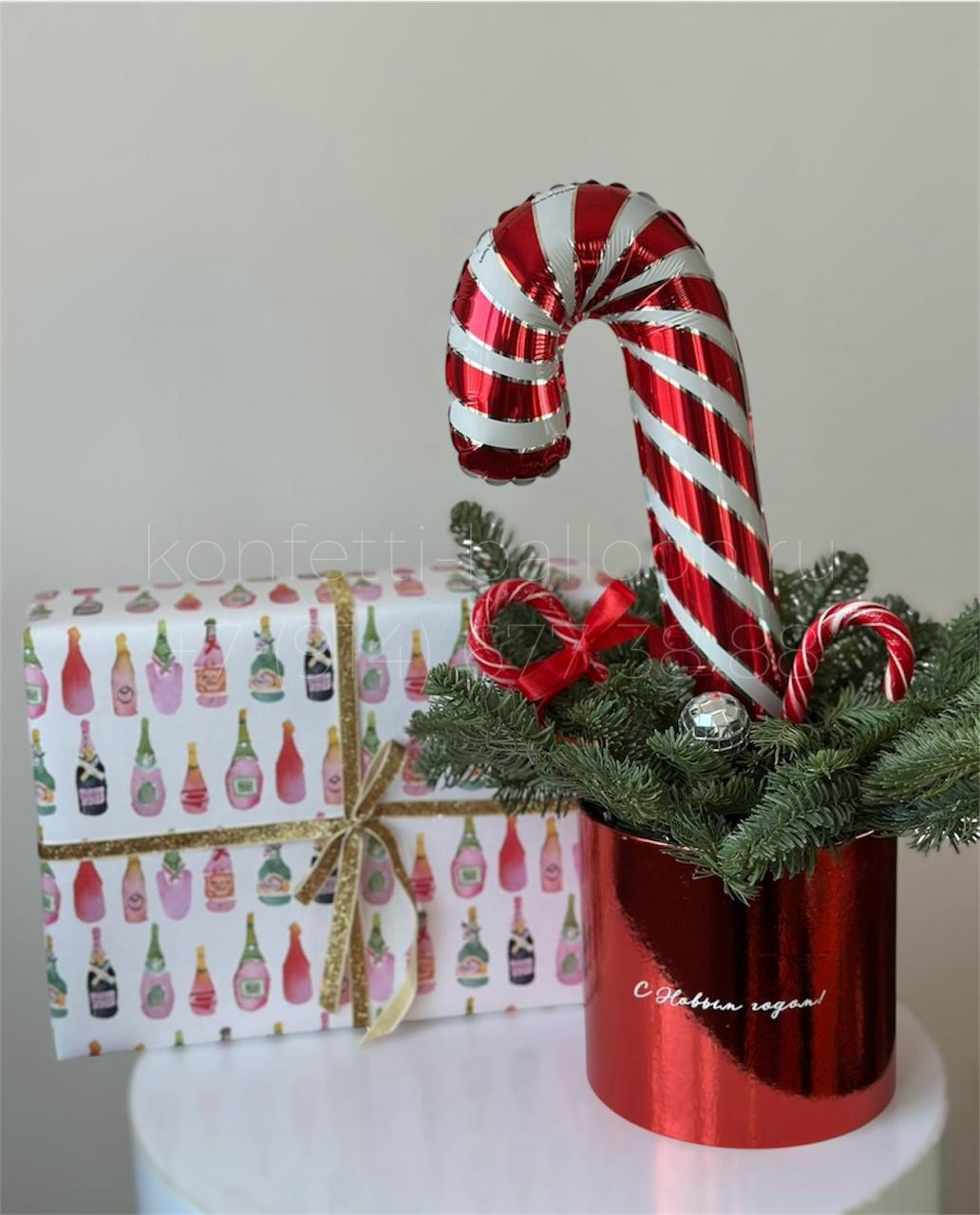 В состав композиции «Большой бокс с пихтой и Тростью с леденцами» входит: