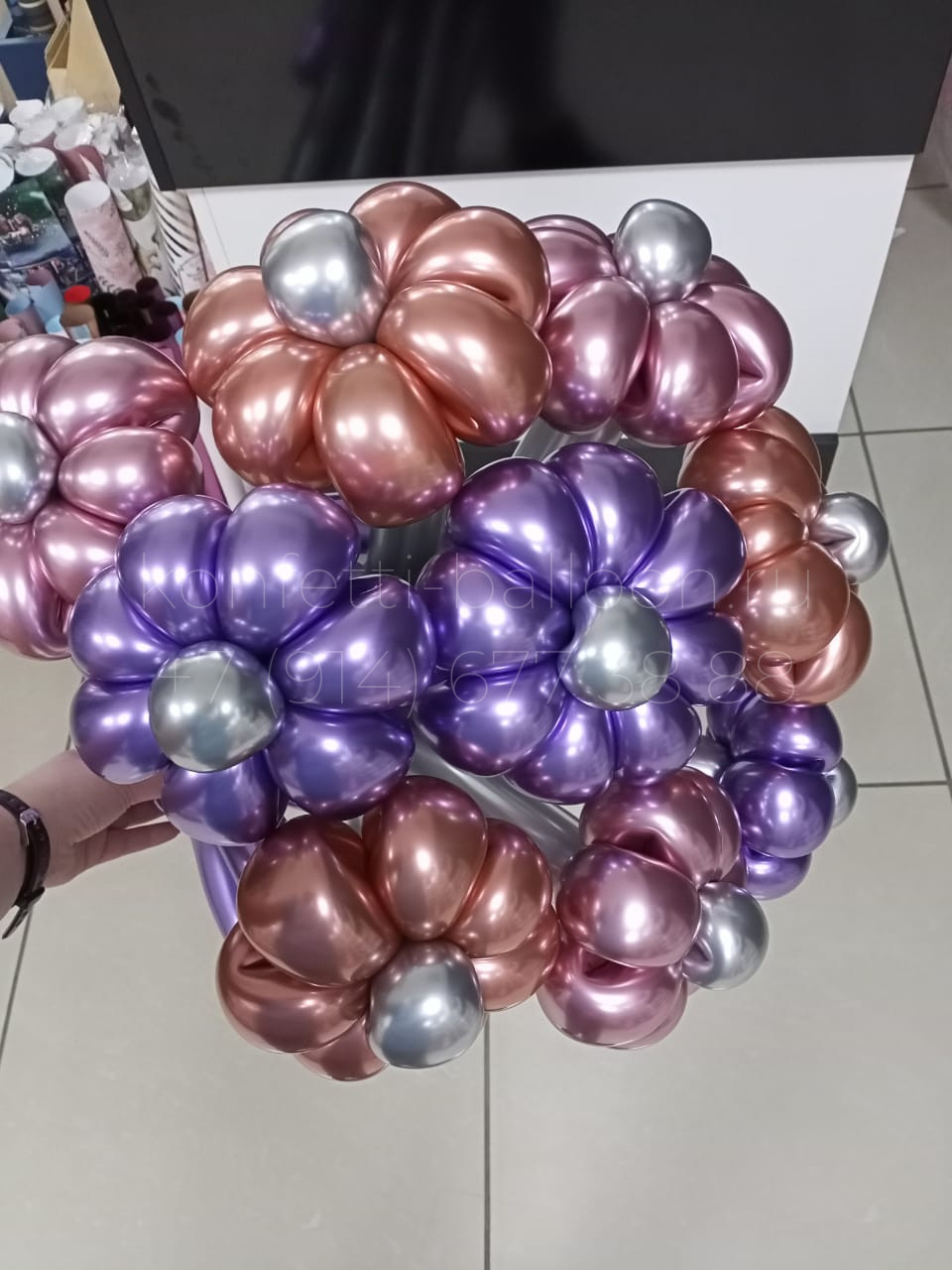 Ромашки из хромированных шаров для моделирования — отличная альтернатива гелиевым шарам, при этом выглядят эффектно и оригинально