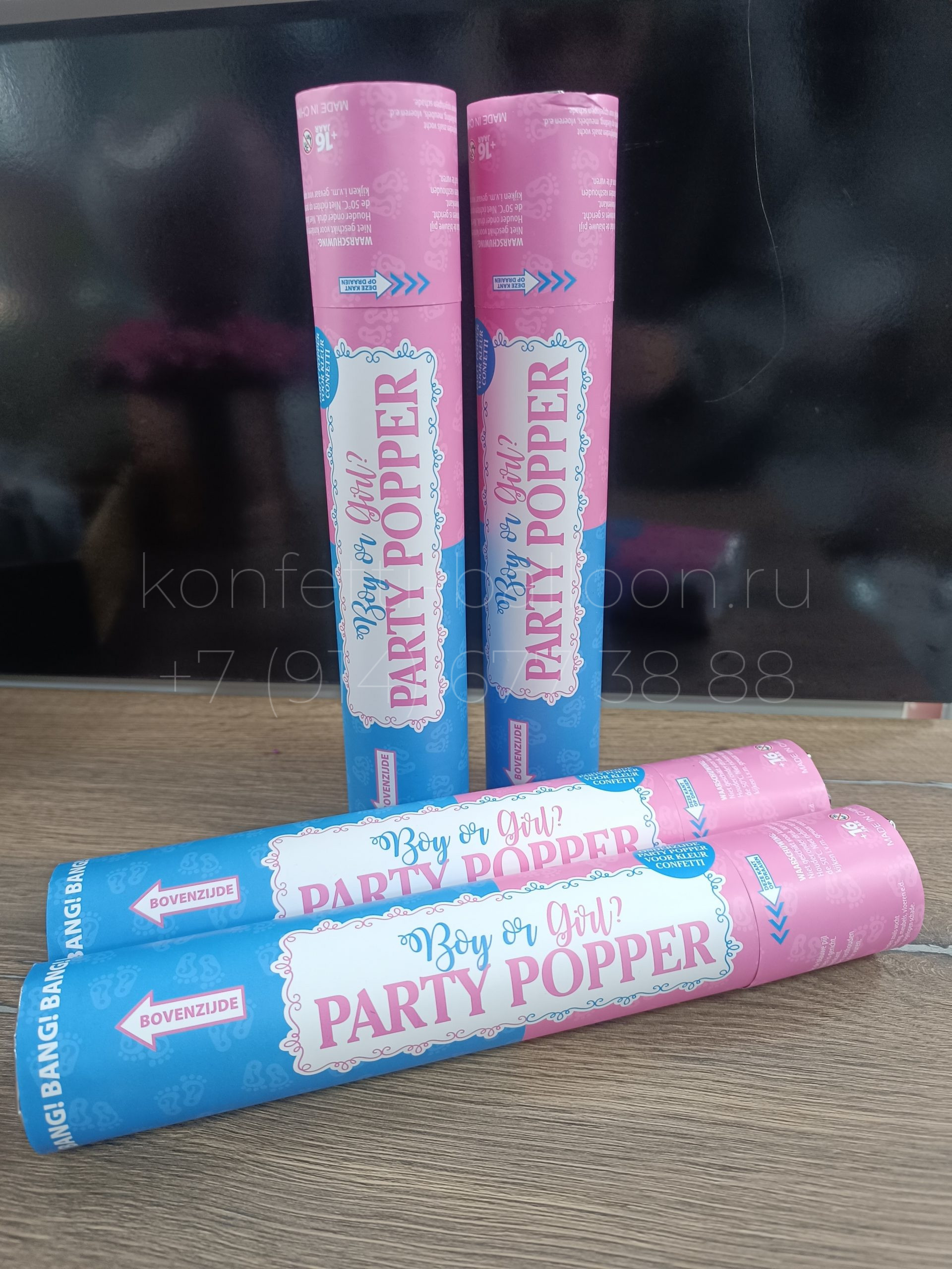 На хлопушке не указан пол ребенка, поэтому никто из присутствующих не узнает заранее пол ребенка