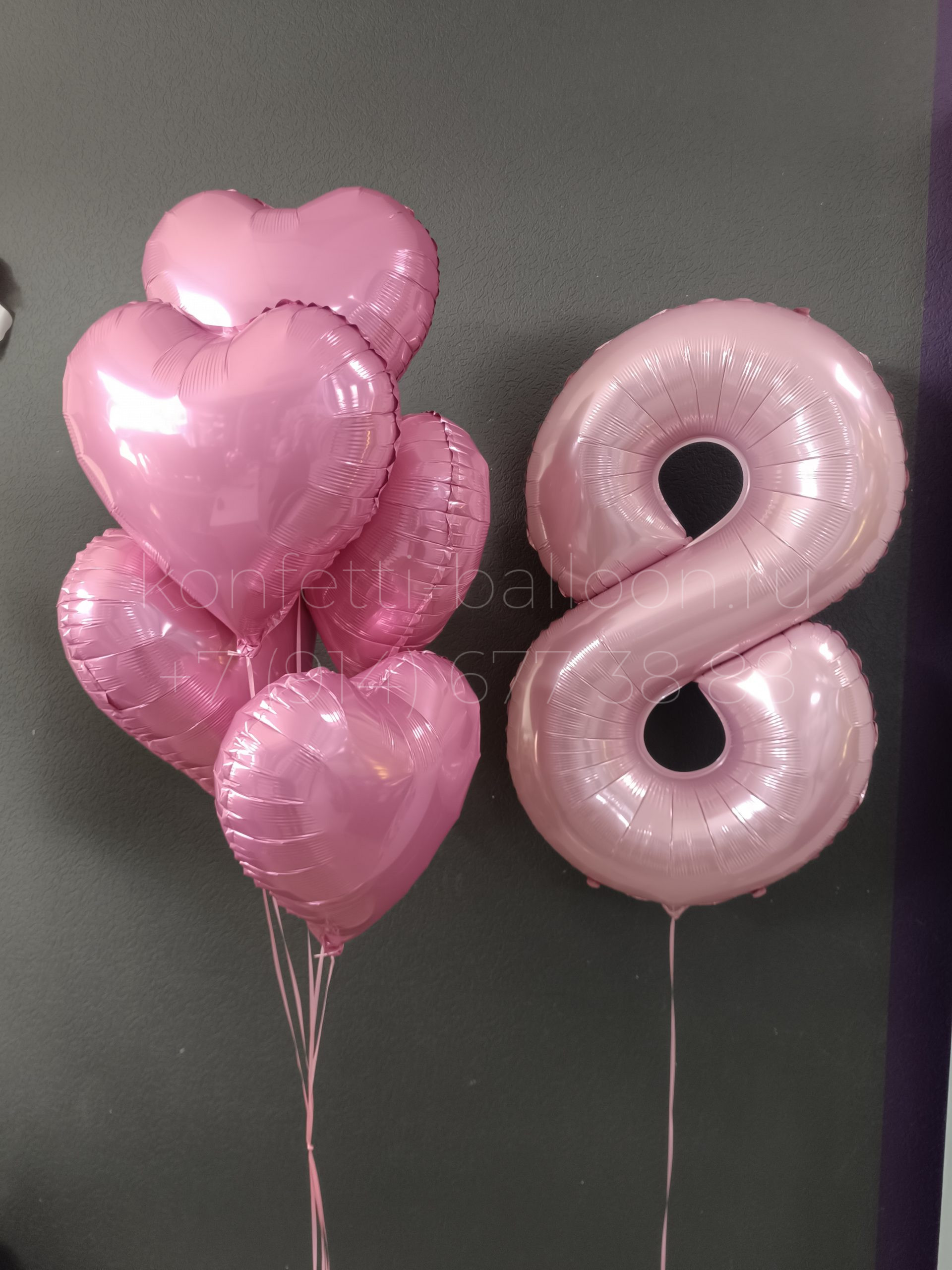 В состав «Композиция из гелиевых фольгированных шаров с цифрой 8» входит: