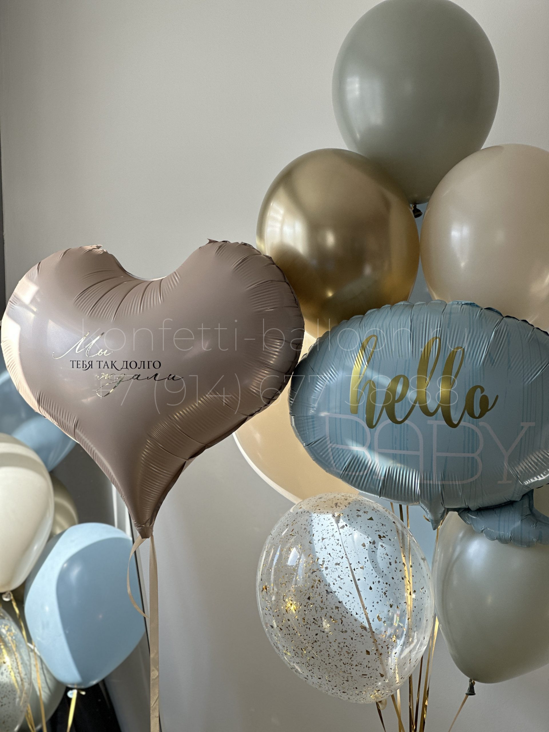 В состав «Композиция из гелиевых шаров на выписку из роддома» входит: