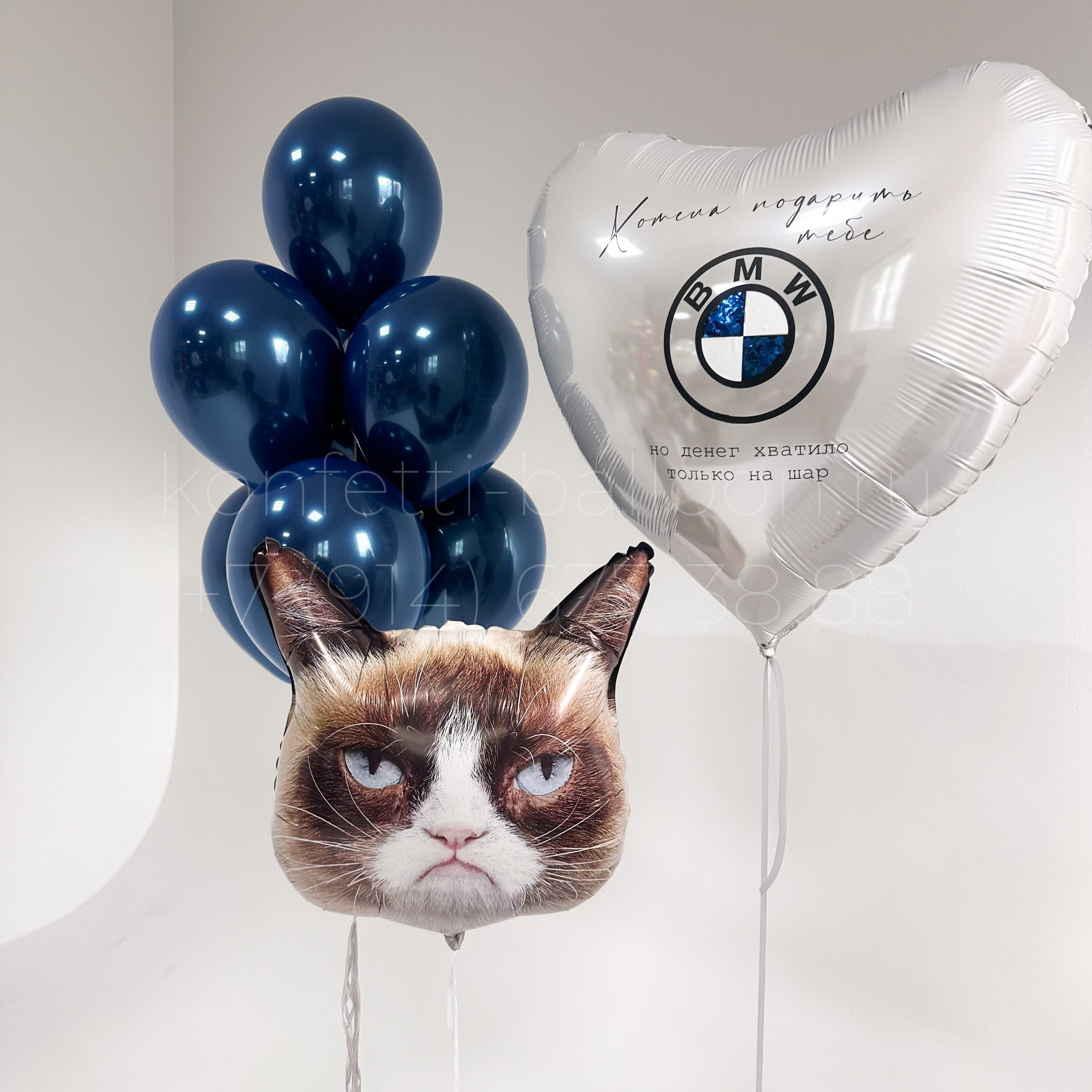 Композиция из гелиевых шаров для мужчины BMW с котом