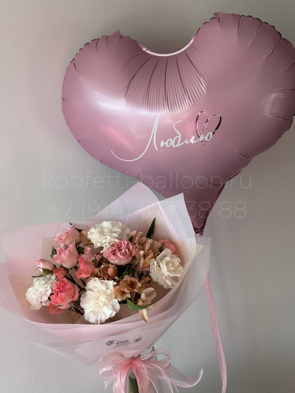 Композиция цветы и шары для любимой ко Дню Влюбленных