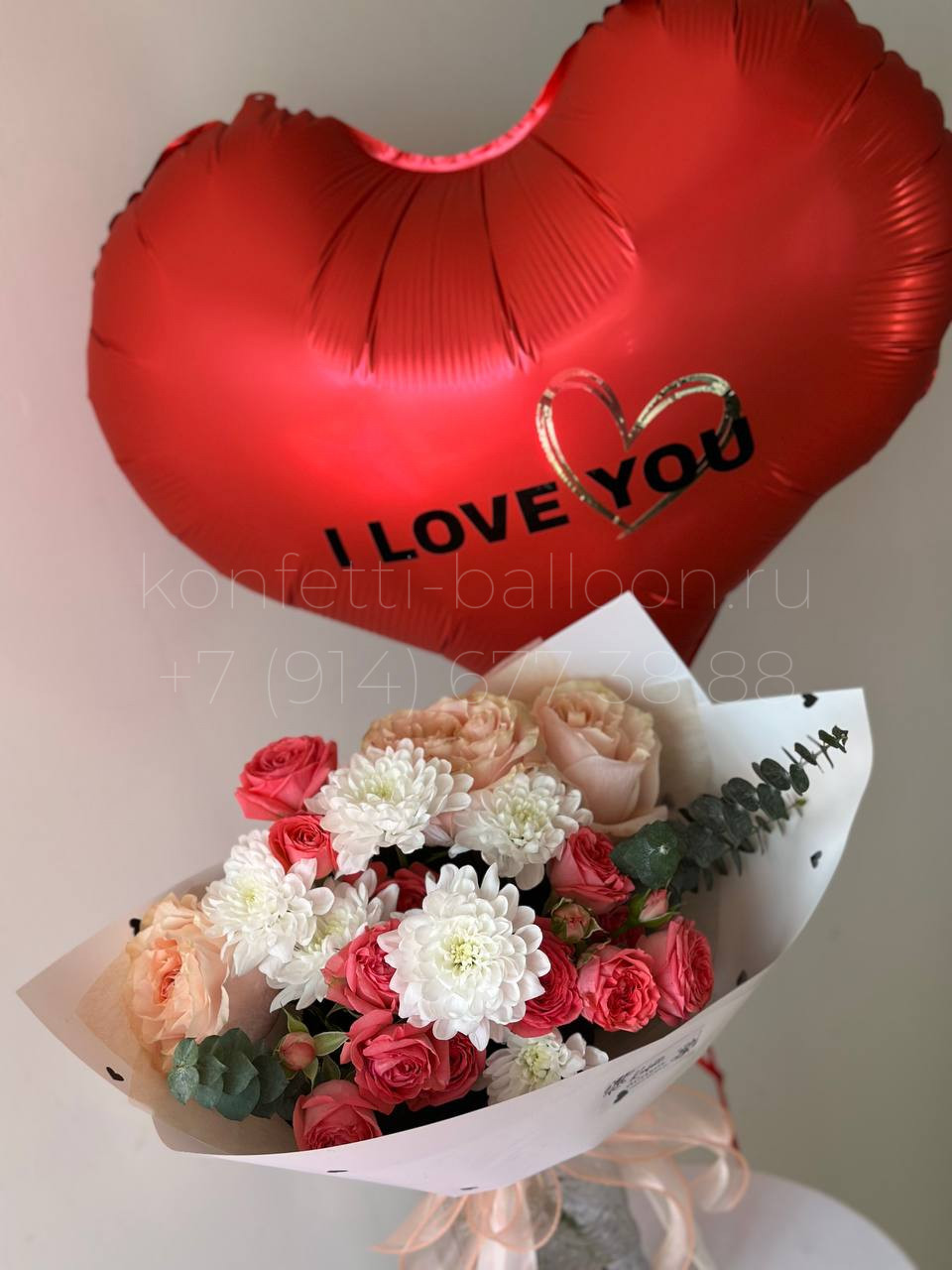 Композиция цветы и шары для любимой ко Дню Влюбленных