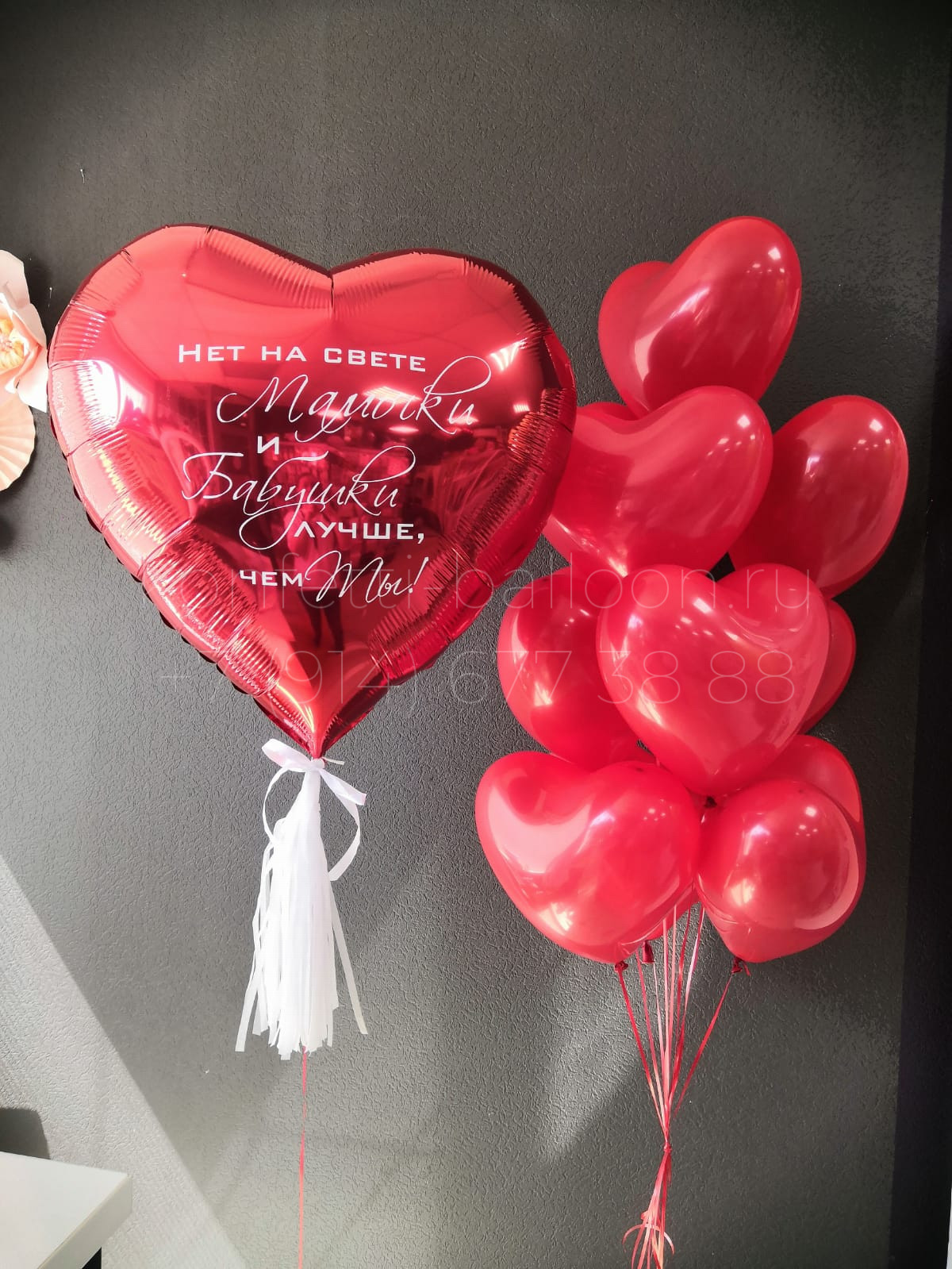 Сердце гигант 70 см с индивидуальной надписью и декоративной кистью