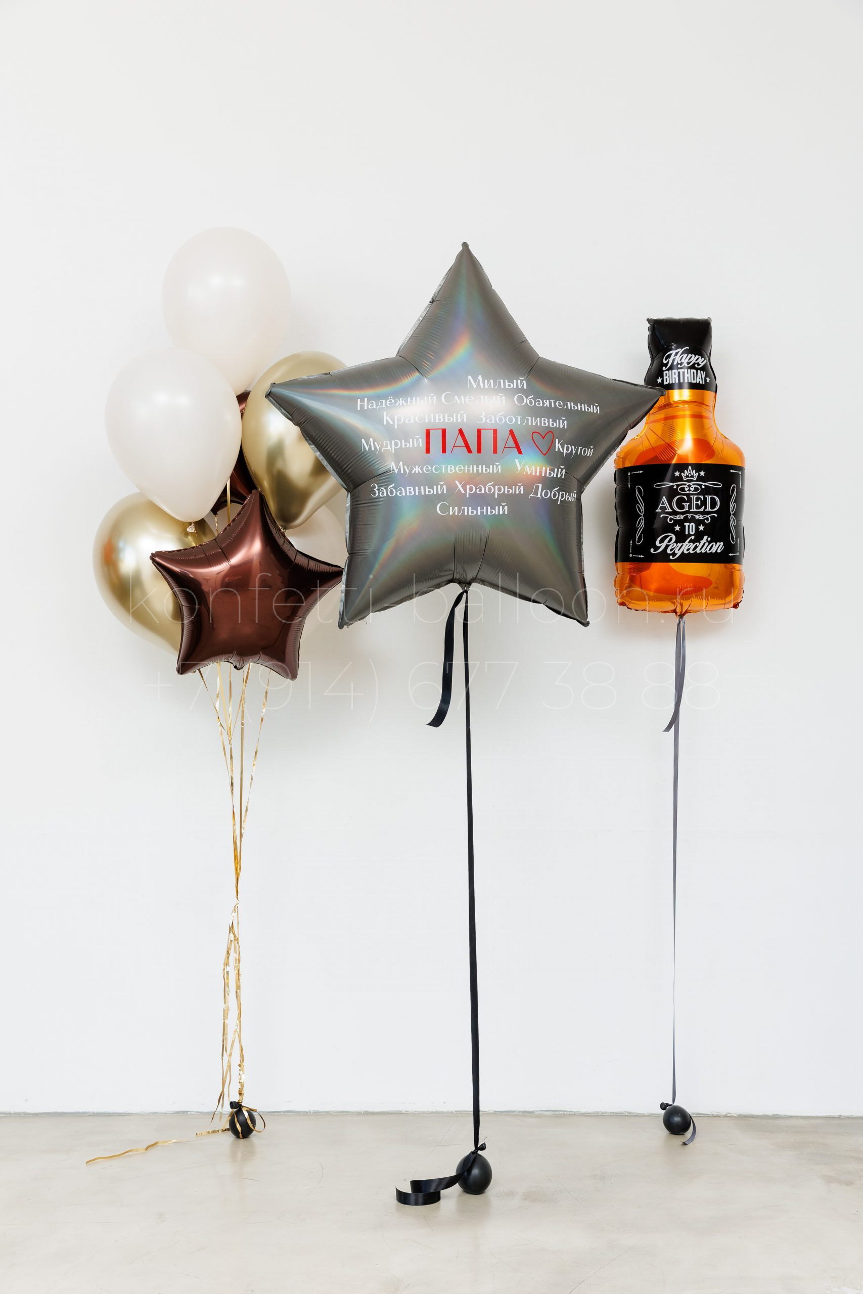 В состав “Композиция из гелиевых шаров для папы с виски” входит: