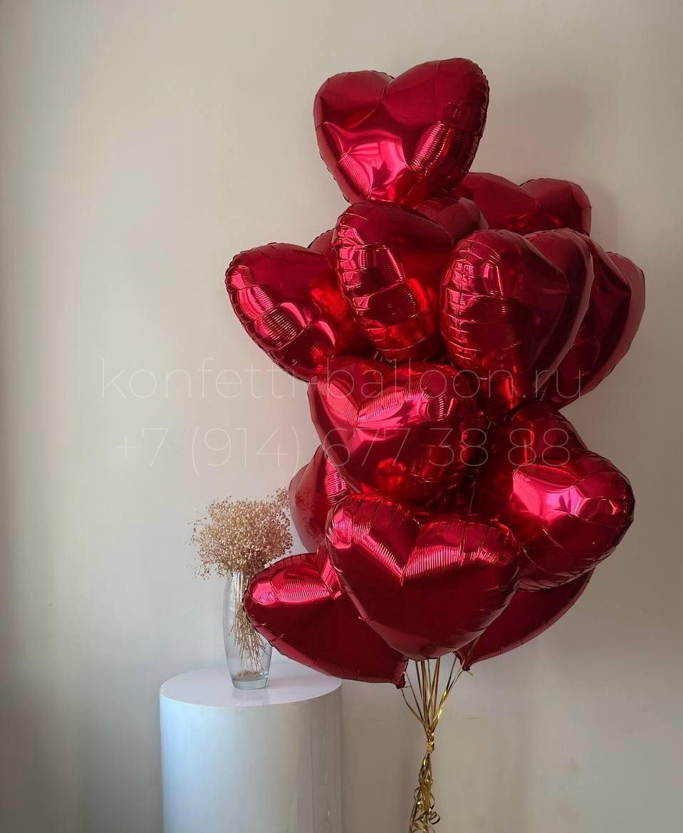 15 сердец фольгированных 45 см