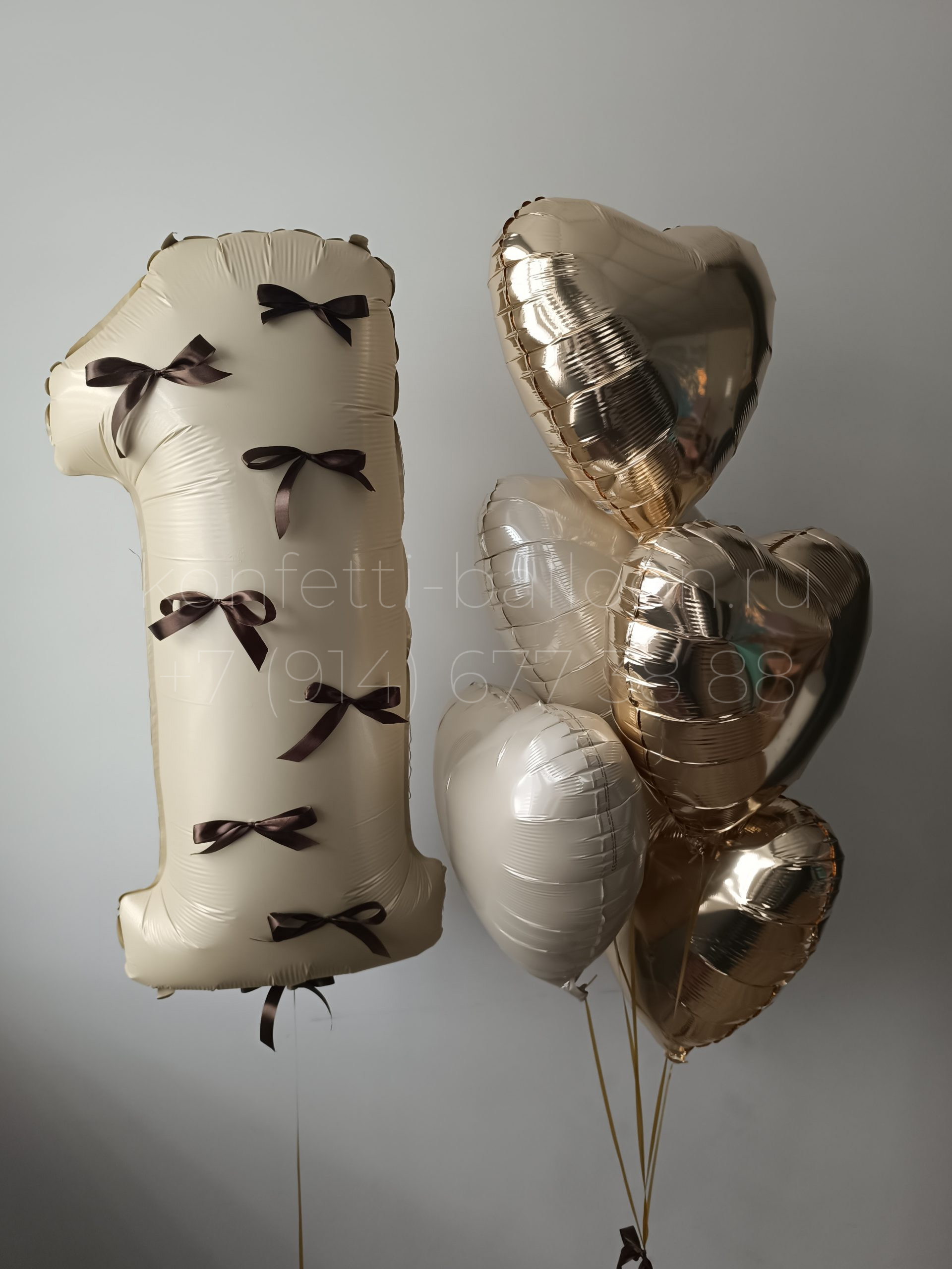 Композиция из гелиевых фольгированных шаров на 1 годик