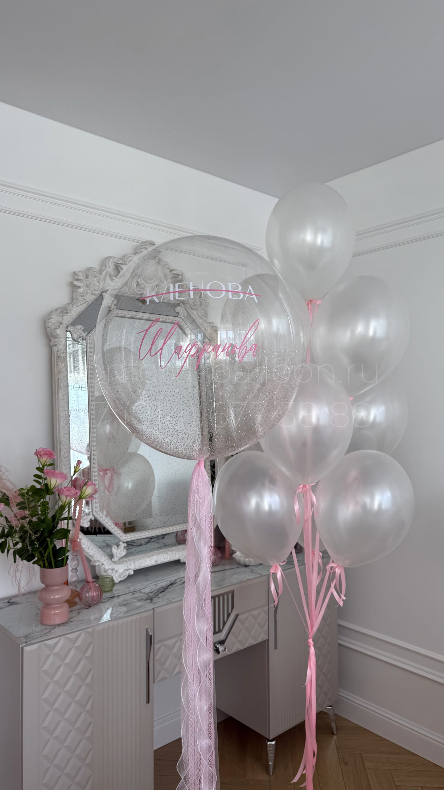 Композиция из гелиевых шаров с шаром Bubbles на девичник