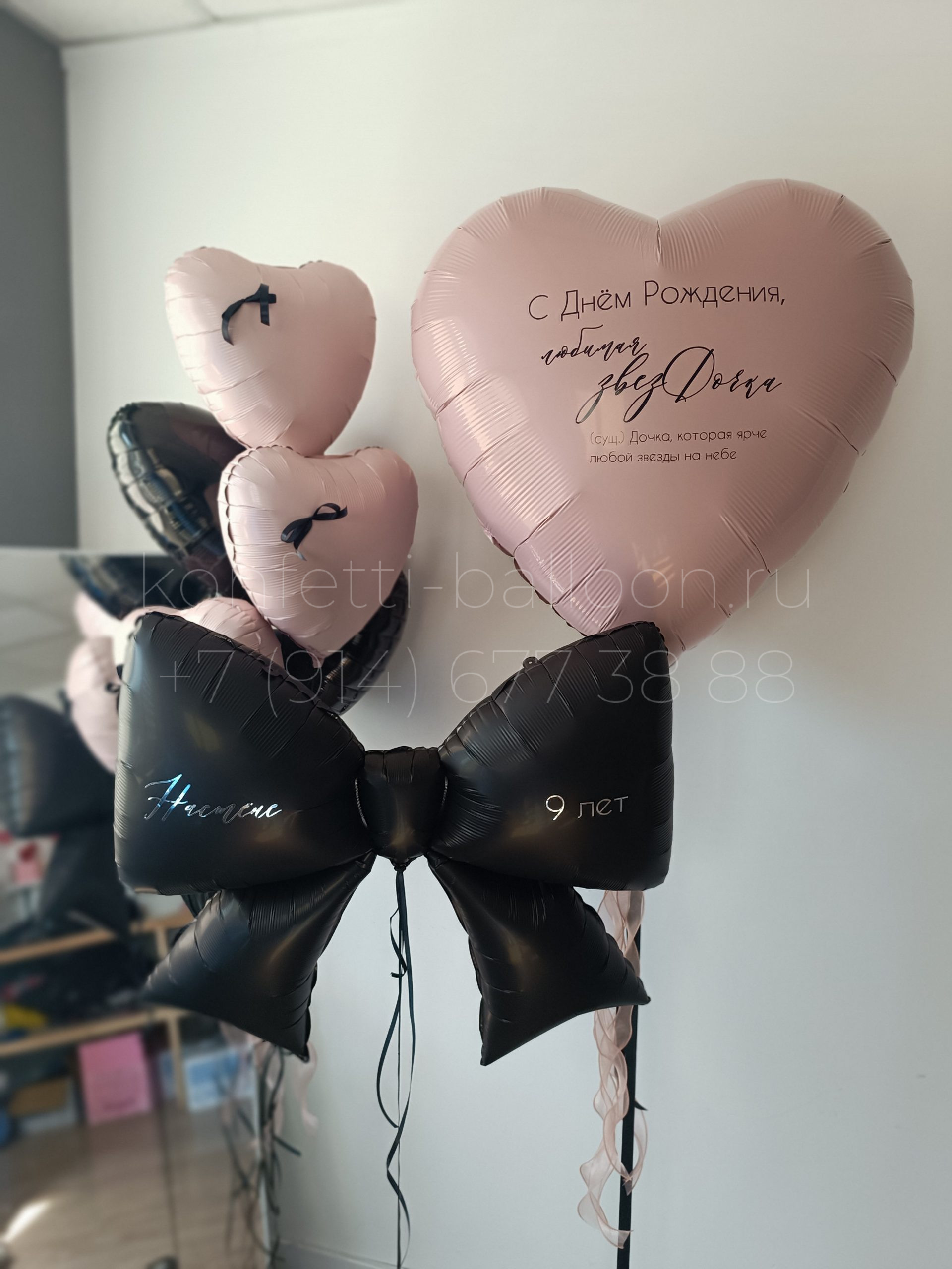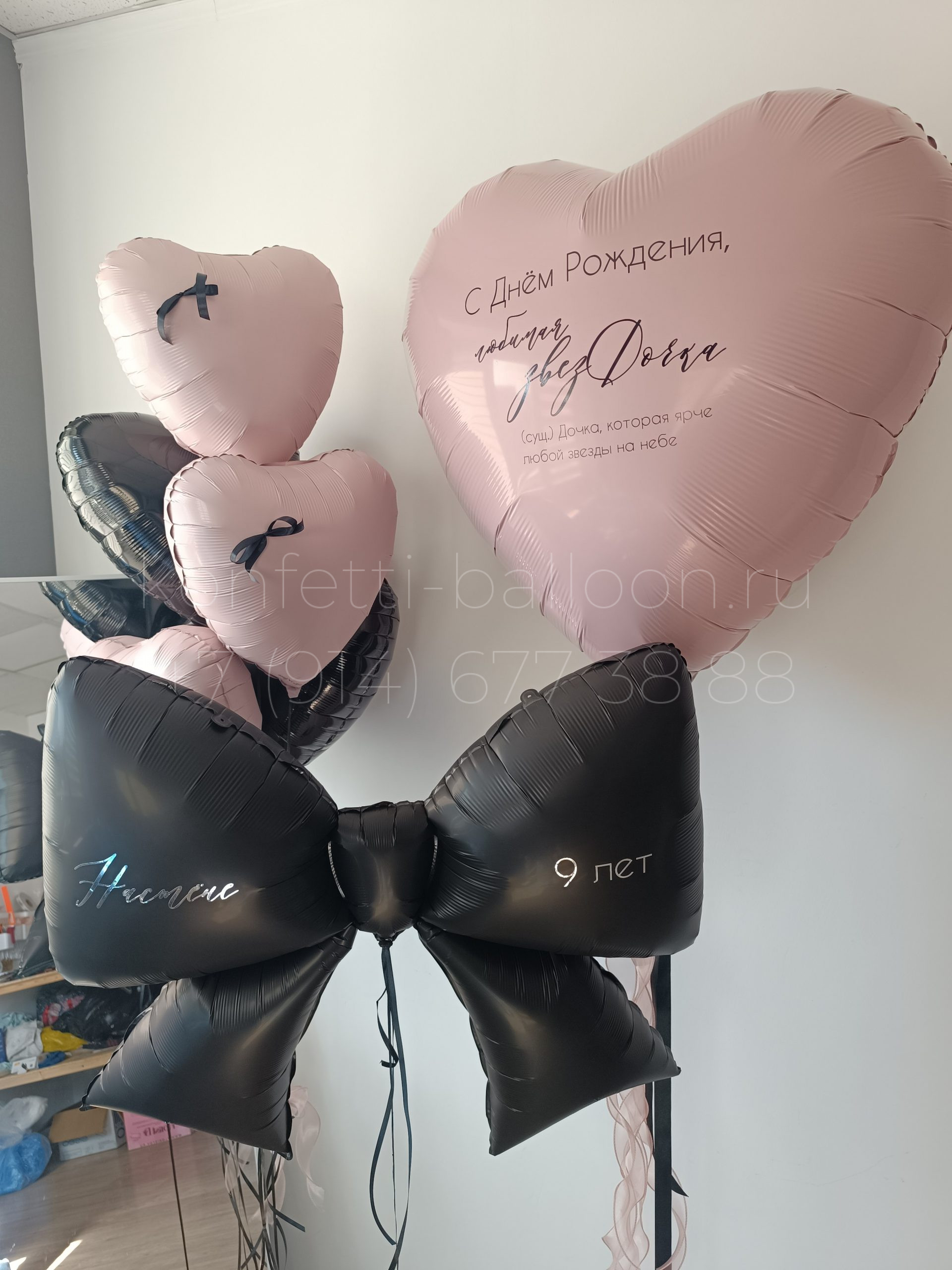 В состав «Композиция из гелиевых фольгированных сердец для дочери» входит: