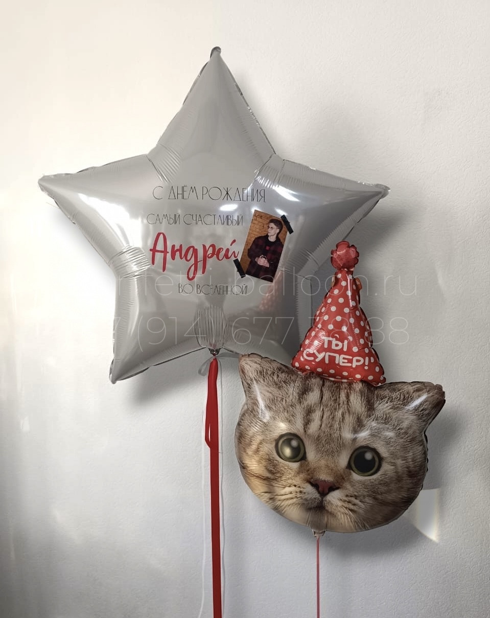 В состав «Композиция из гелиевых фольгированных шаров с котом» входит: