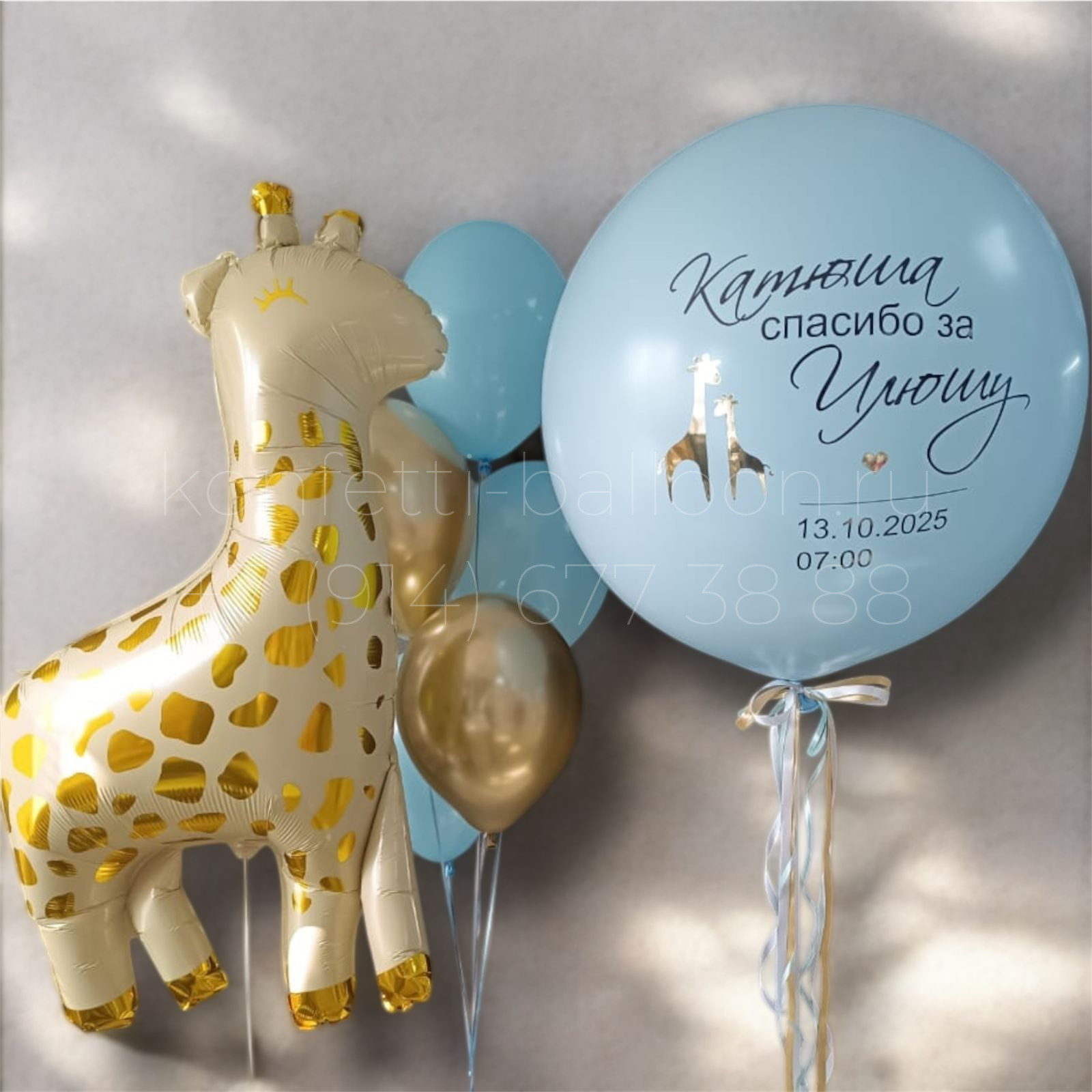 В состав «Композиция из гелиевых шаров на выписку из роддома» входит: