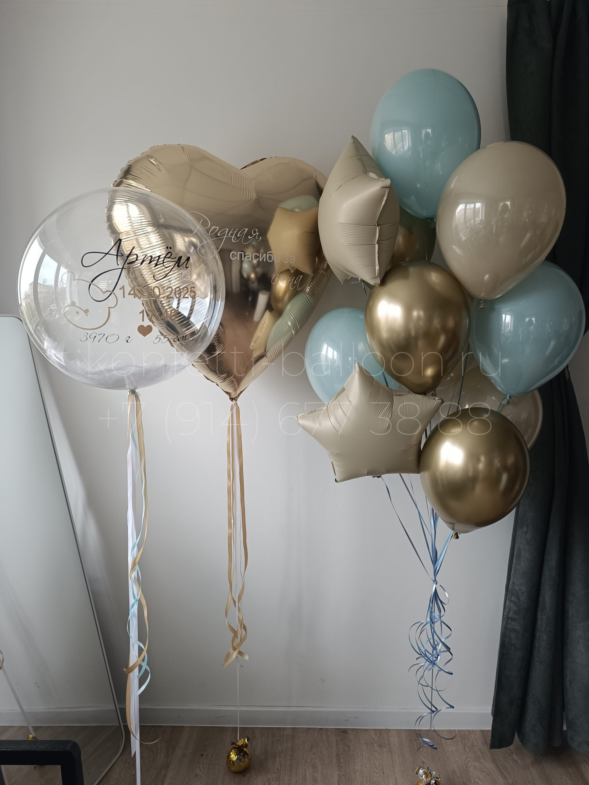 В состав «Композиция из гелиевых шаров на выписку из роддома» входит: