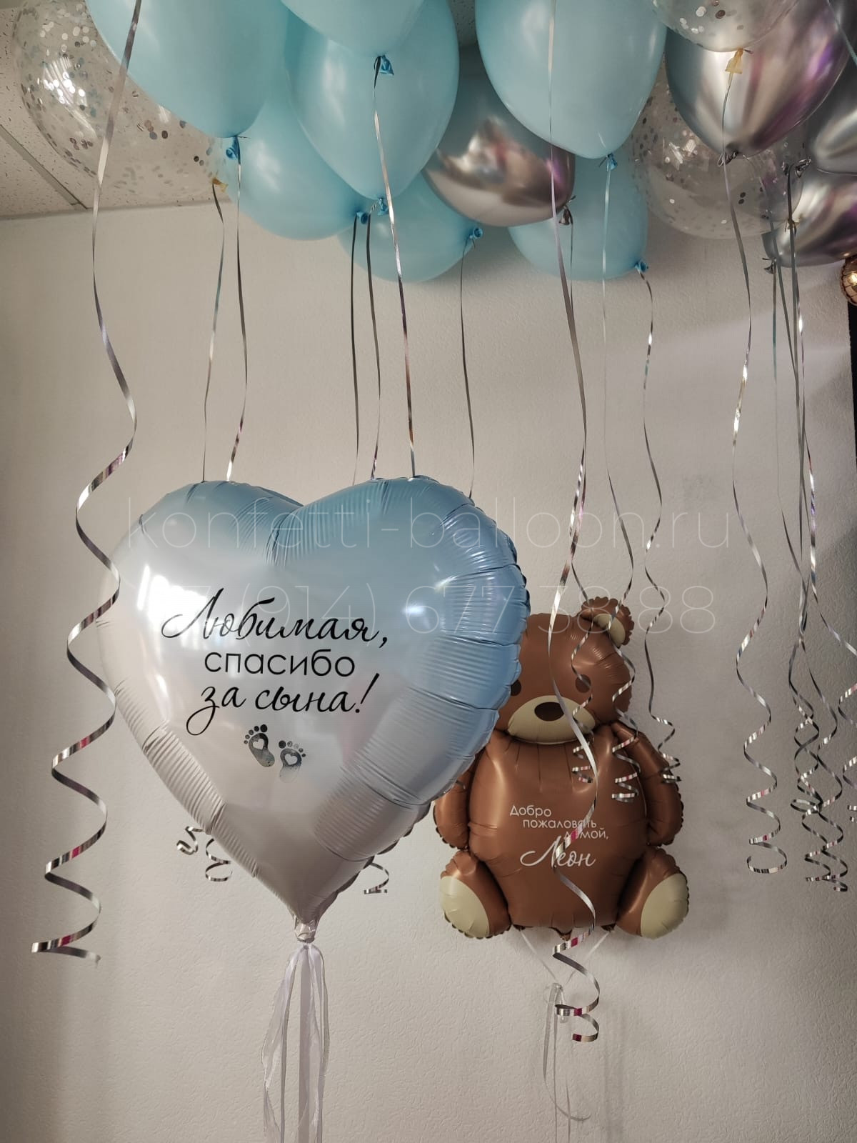 В состав «Композиция из гелиевых шаров на выписку из роддома» входит: