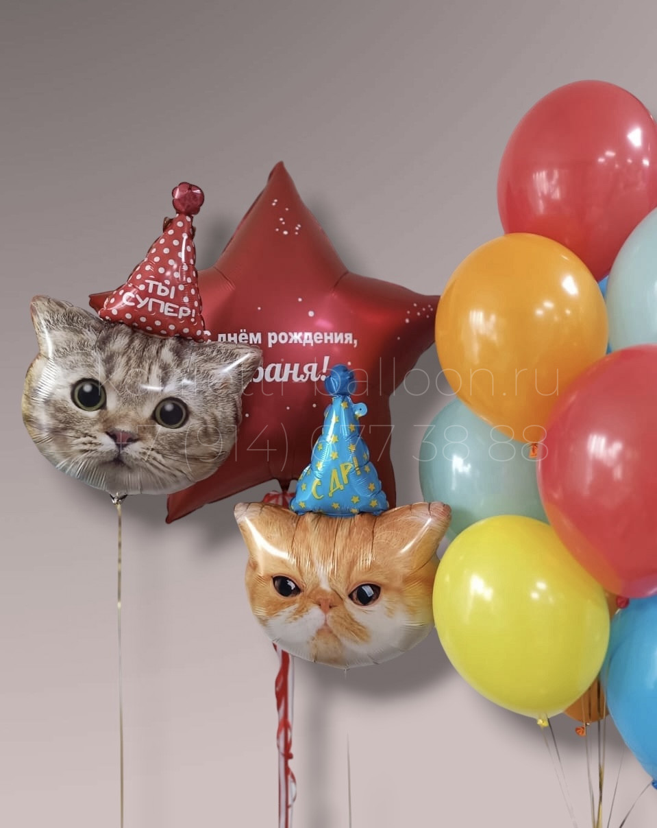 В состав «Композиция из гелиевых шаров с котами в колпачках» входит: