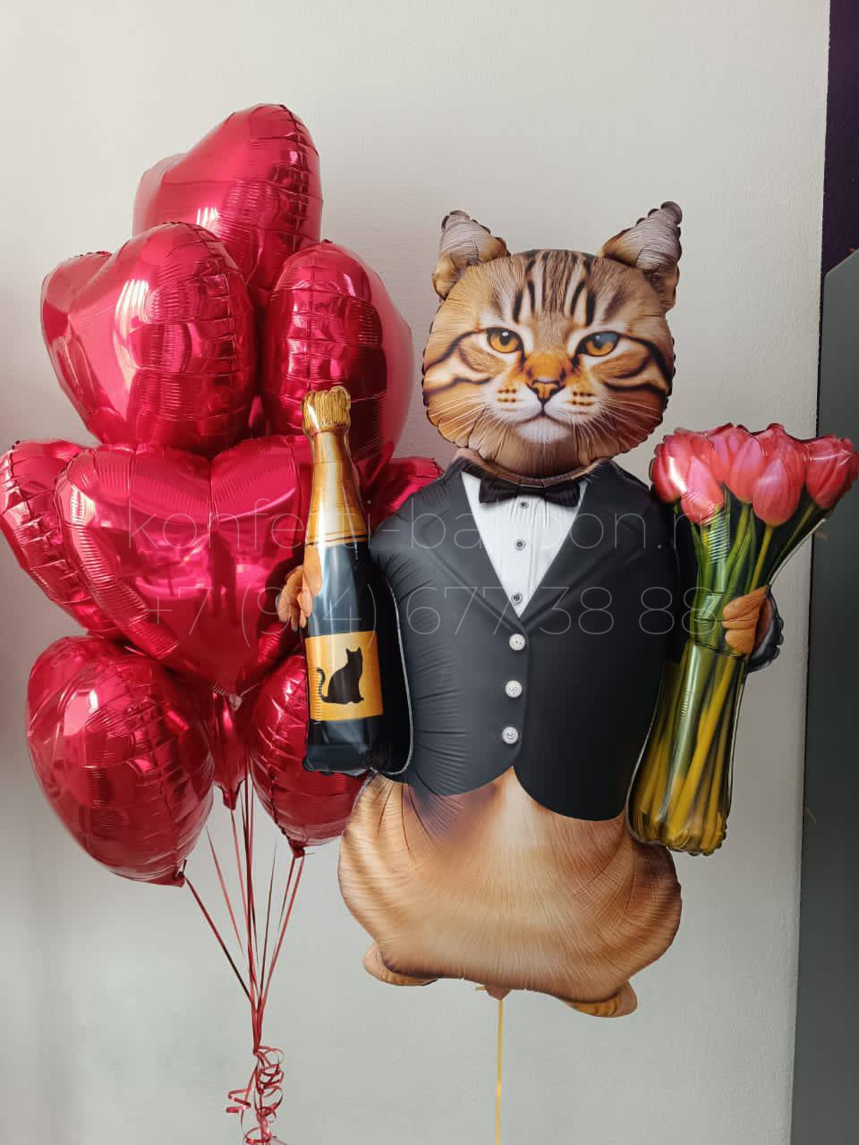 В состав «Композиция из гелиевых фольгированных шаров с котом» входит: