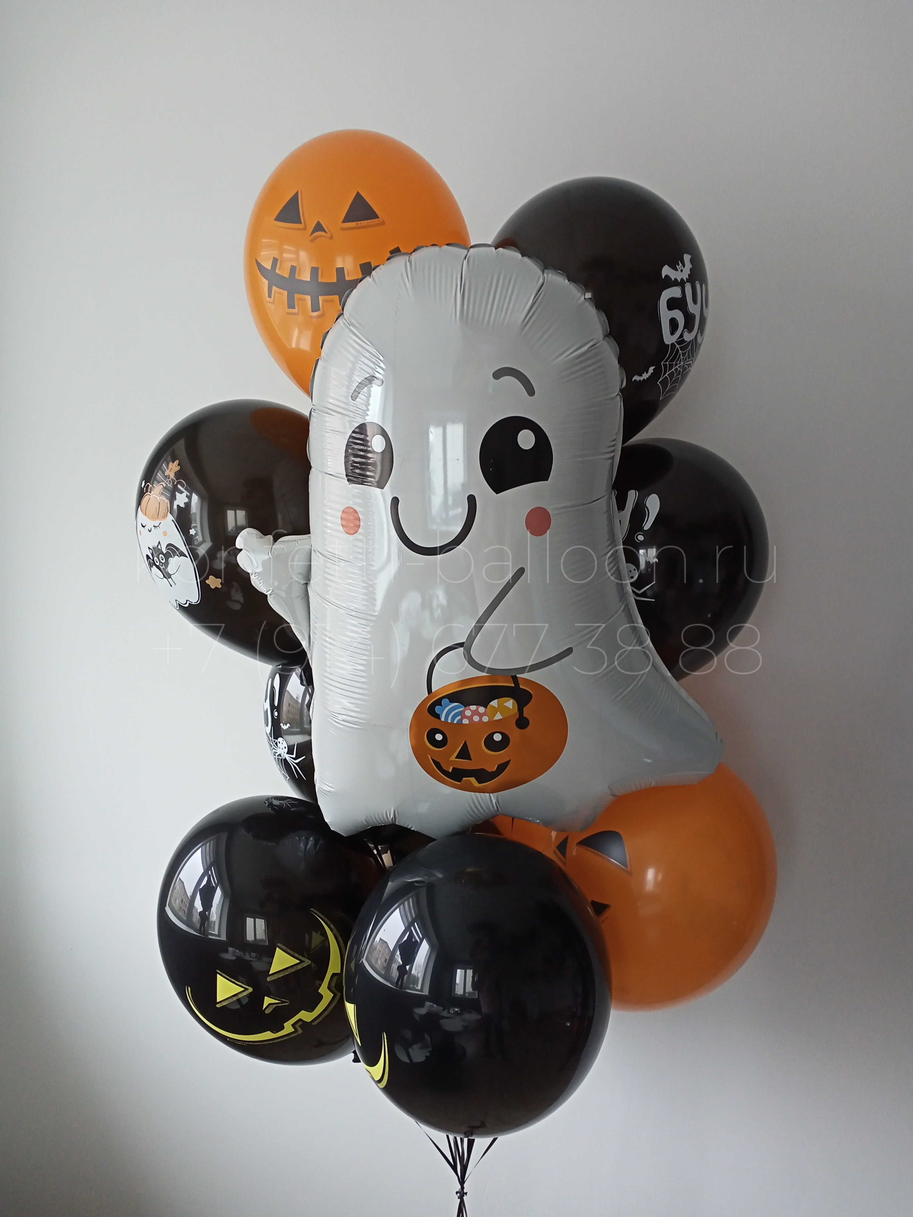 Композиция из гелиевых шаров с милым привидением на Хэллоуин Halloween