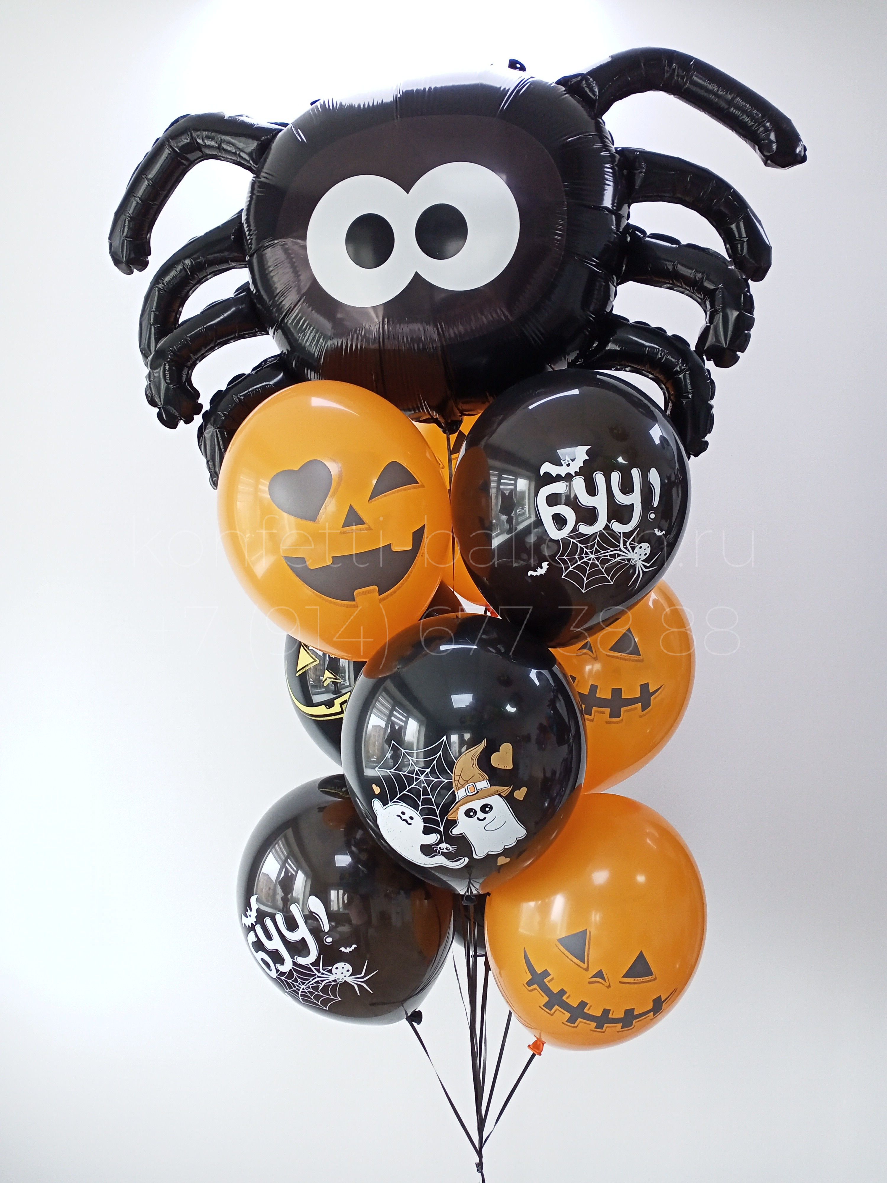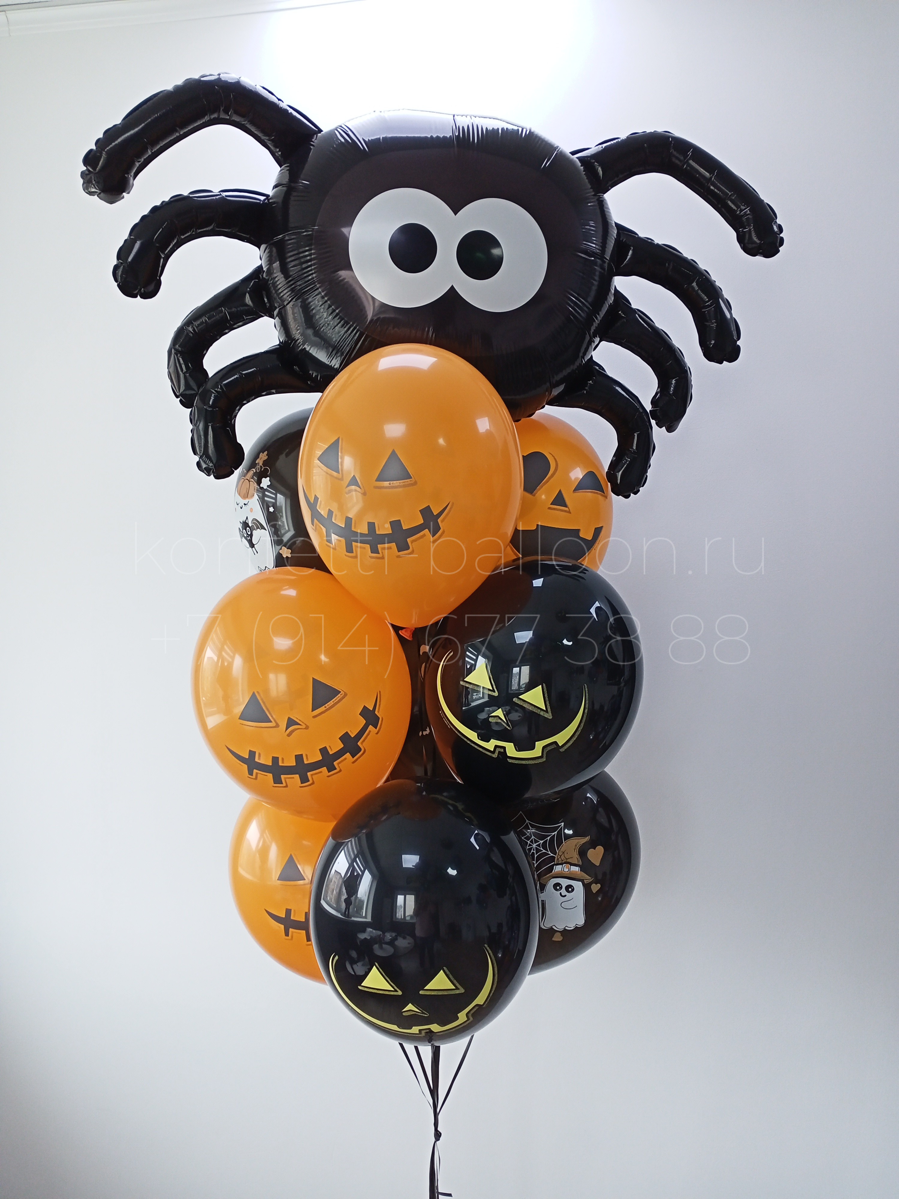 Композиция из гелиевых шаров с пауком на Хэллоуин Halloween