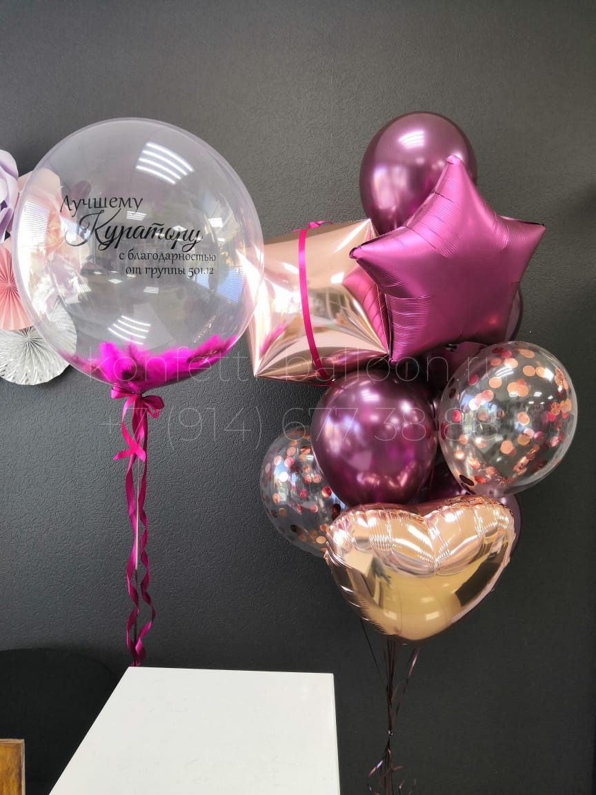 Шар Bubbles оригинал (24 дюйма, размер 60 см) с перьями внутри и индивидуальной надписью