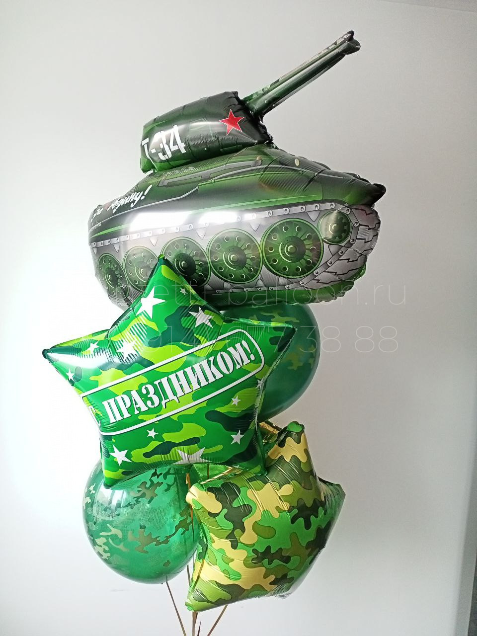 Композиция из гелиевых шаров с танком Т-34