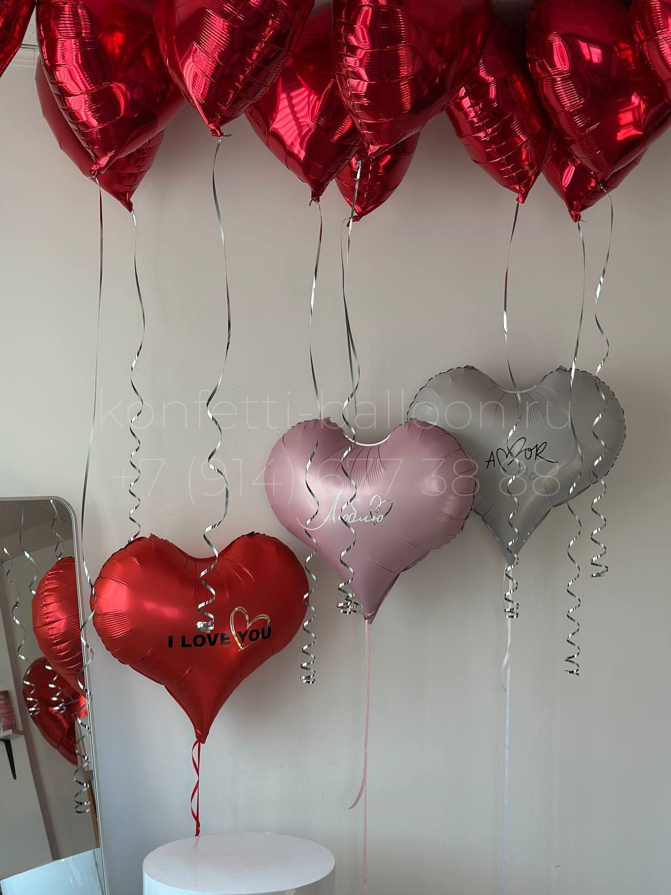 Композиция из гелиевых фольгированных сердец
