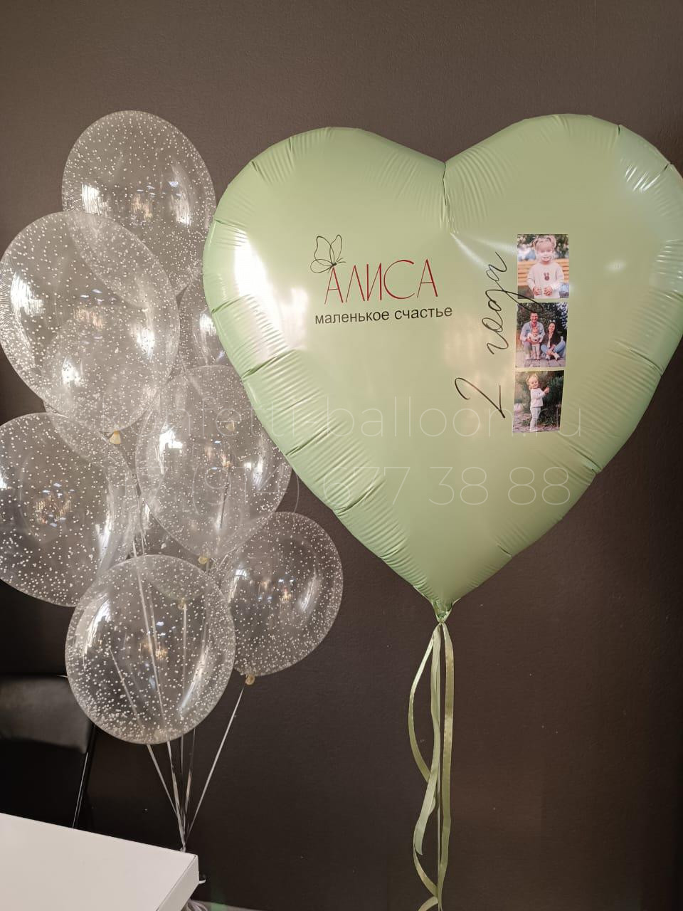 Сердце гигант фольгированное 90 см с фото и индивидуальной надписью
