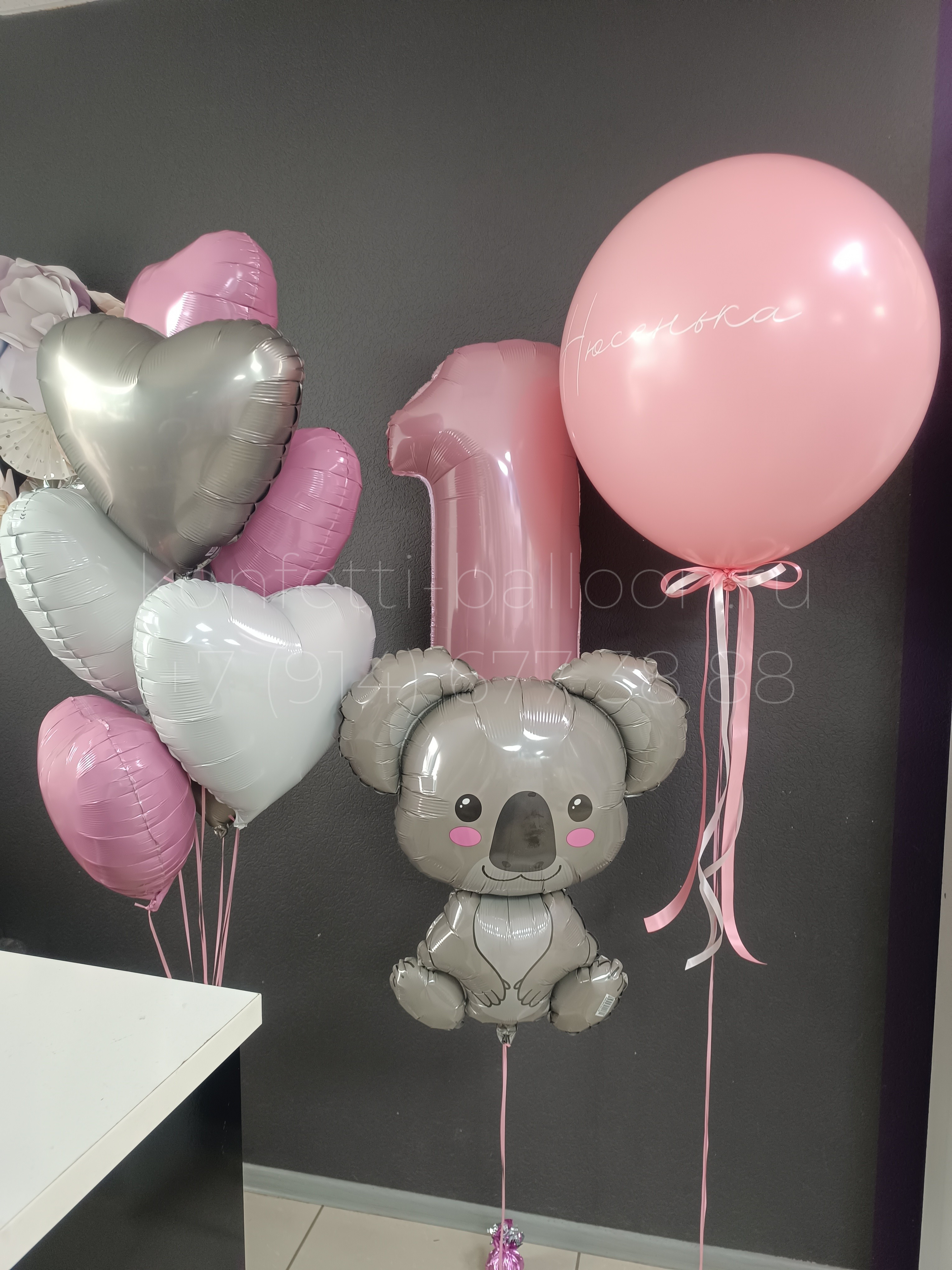 В состав «Композиция из гелиевых шаров с коалой на 1 годик» входит:
