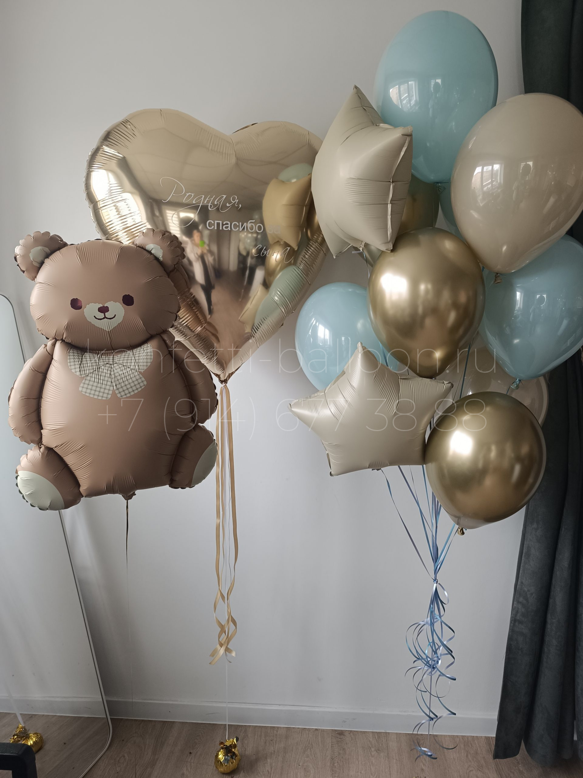 В состав «Композиция из гелиевых шаров на выписку из роддома» входит: