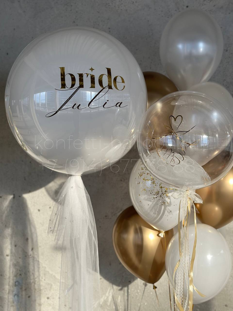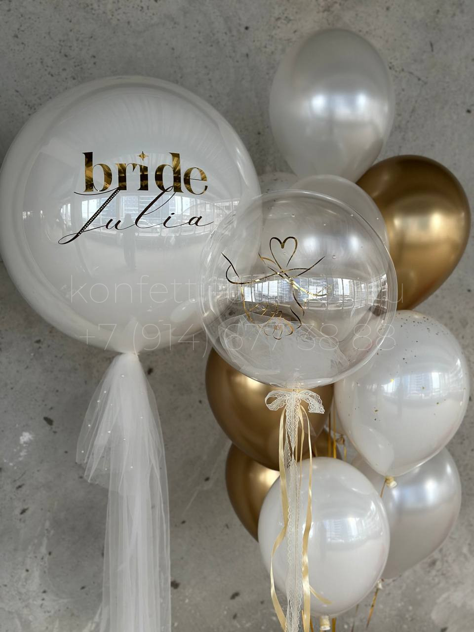 Композиция из гелиевых шаров на девичник с декором фатин