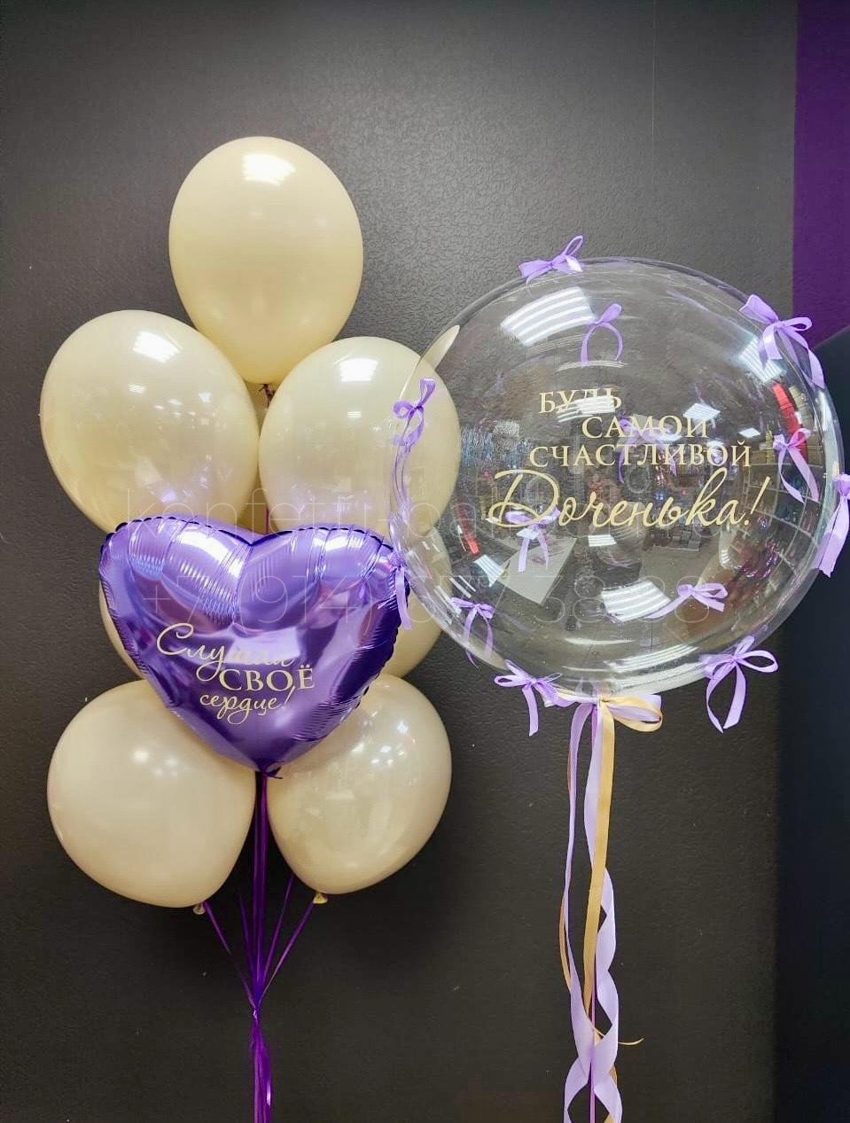 Шар Bubbles аналог 45-50 см с индивидуальной надписью и дополнительным декором бантики