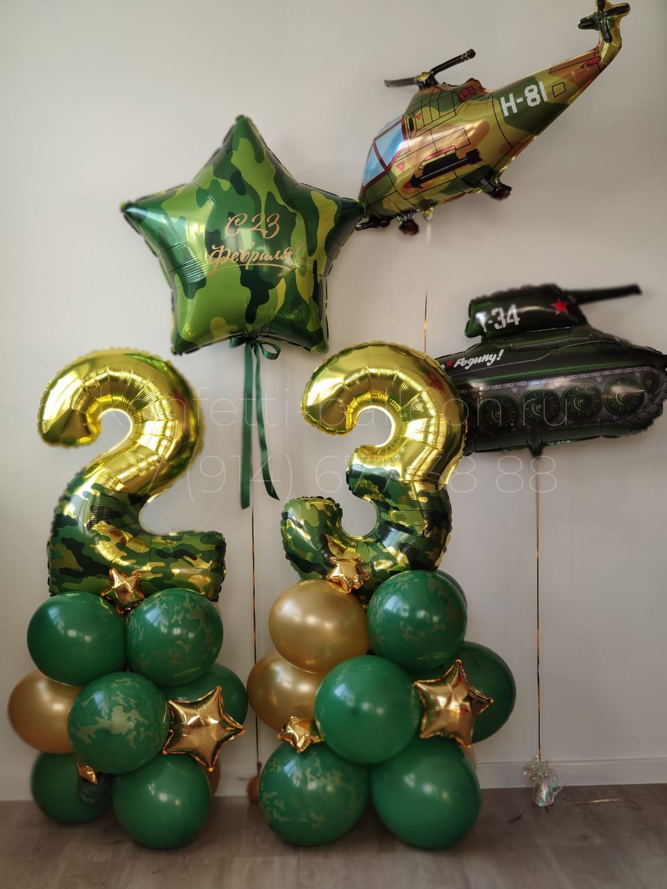 Цифры фольгированные 23 Камуфляж на подставке из шаров