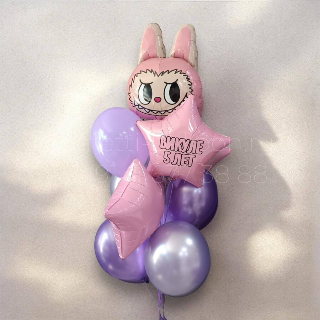Композиция из гелиевых шаров Лабубу на 5 лет для девочки