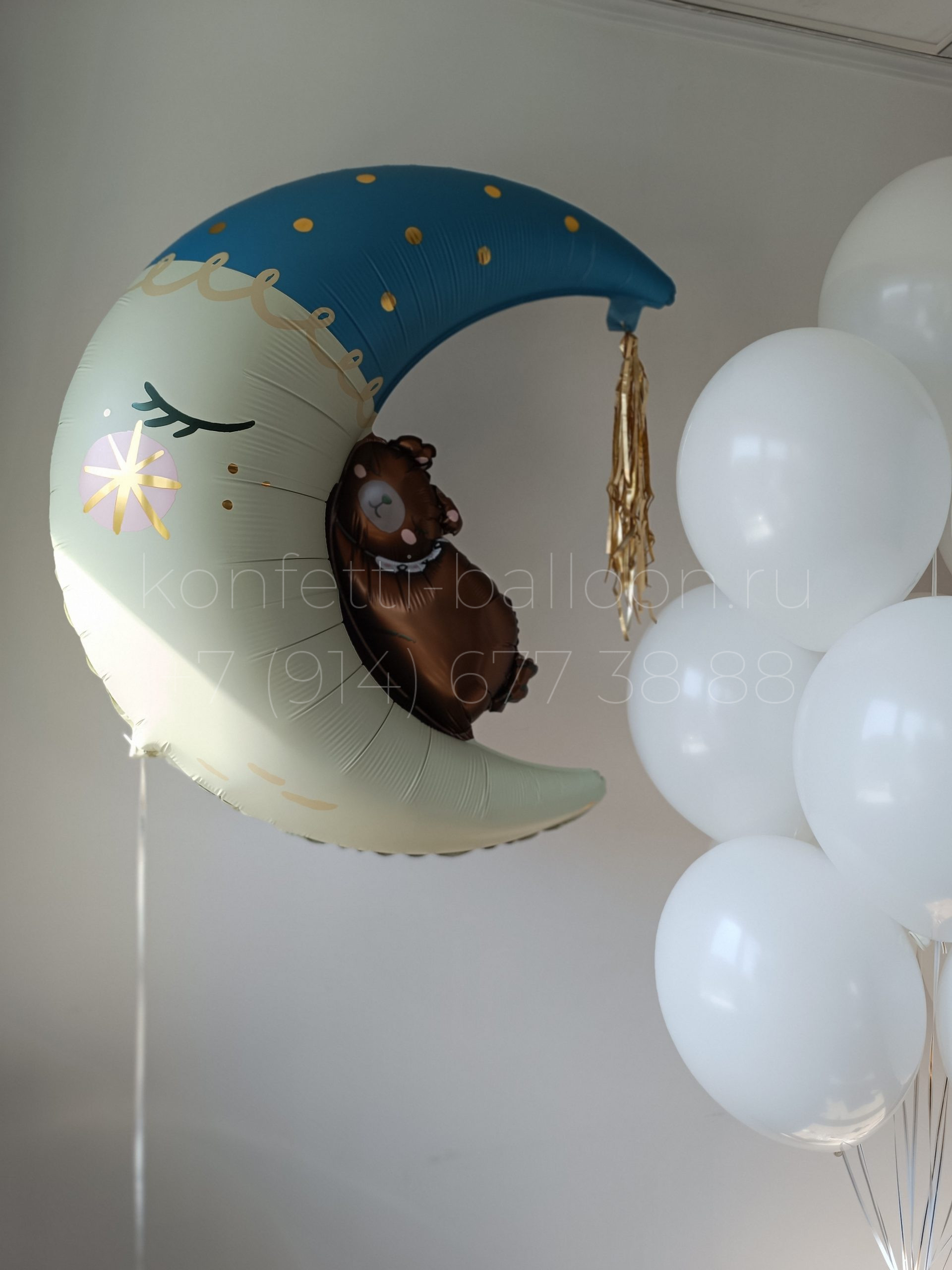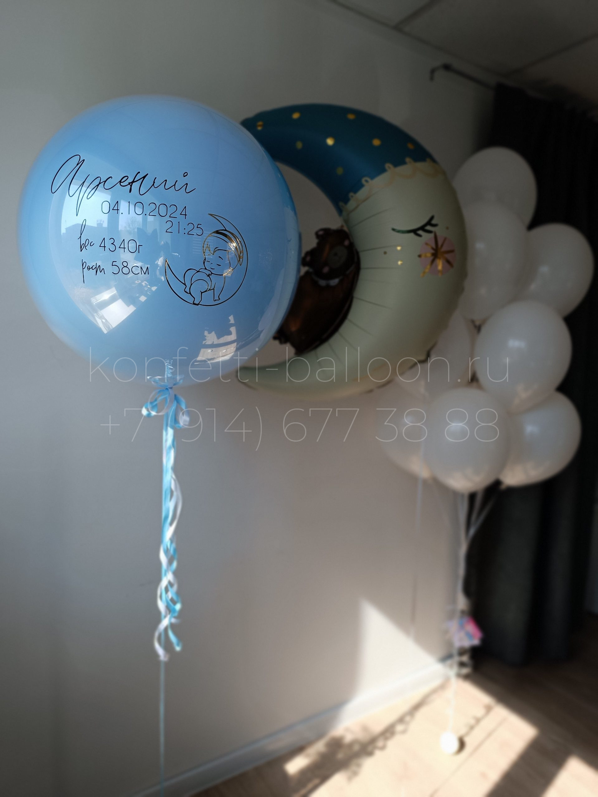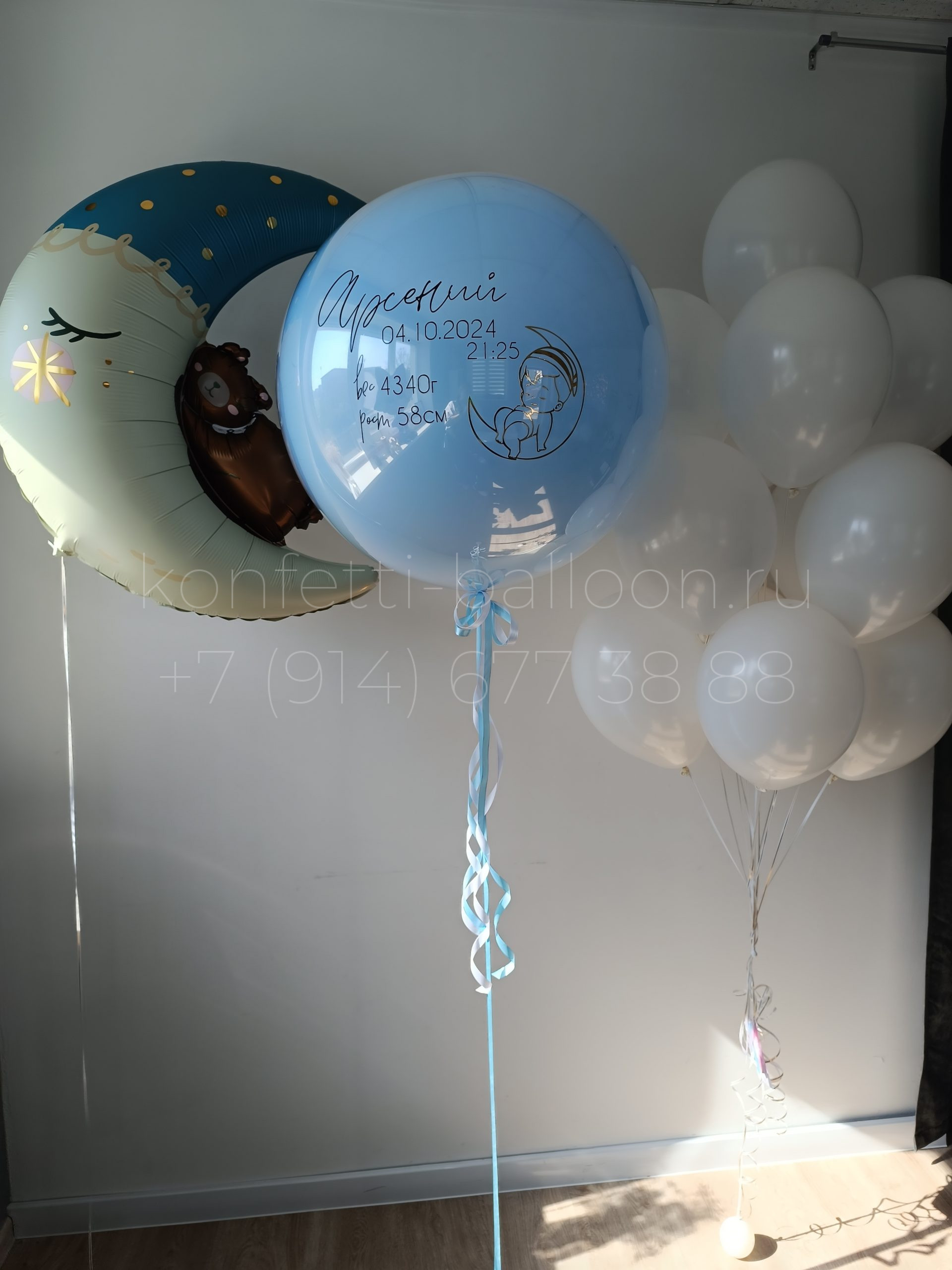 Композиция из гелиевых шаров на выписку из роддома с месяцем