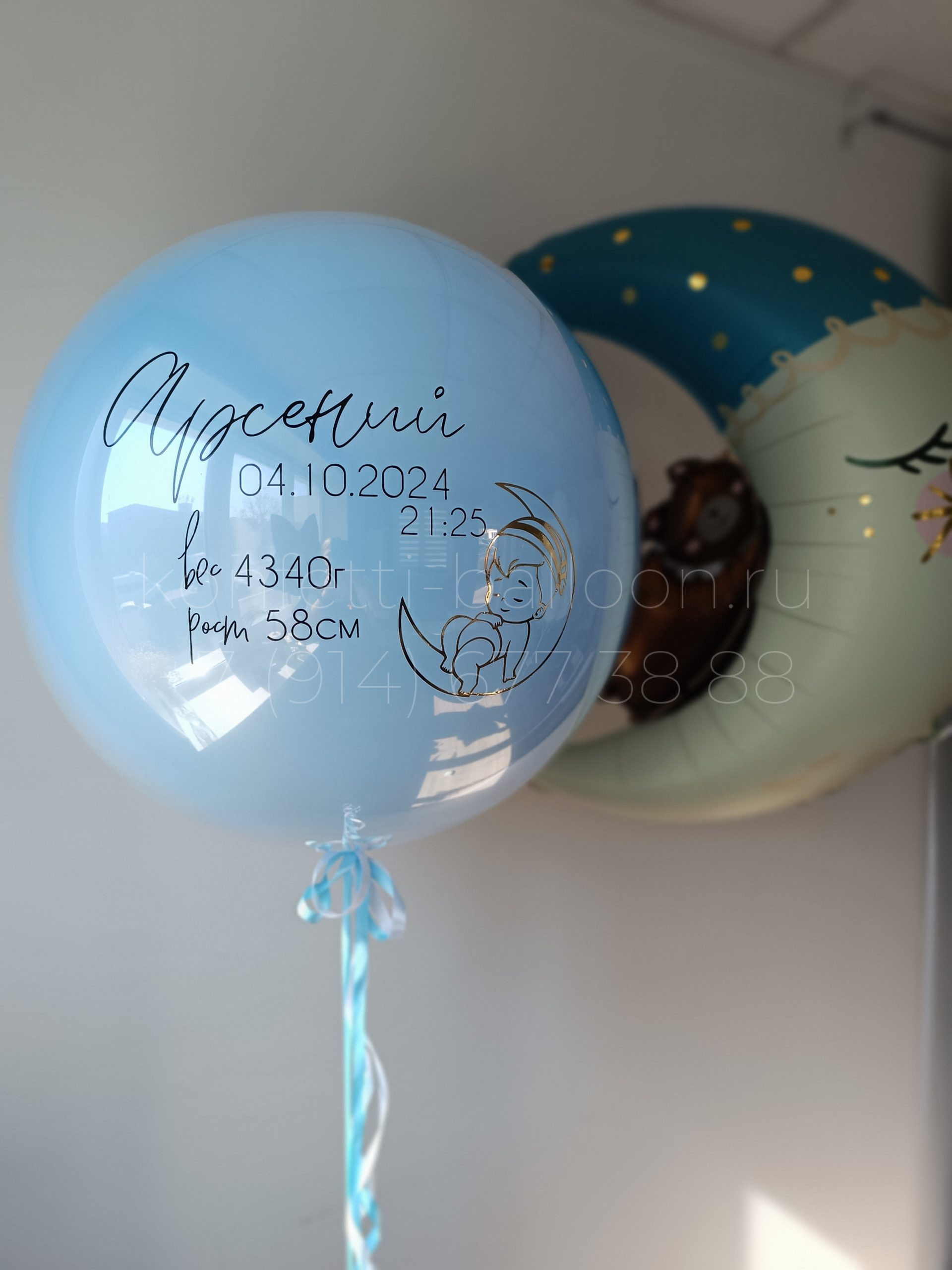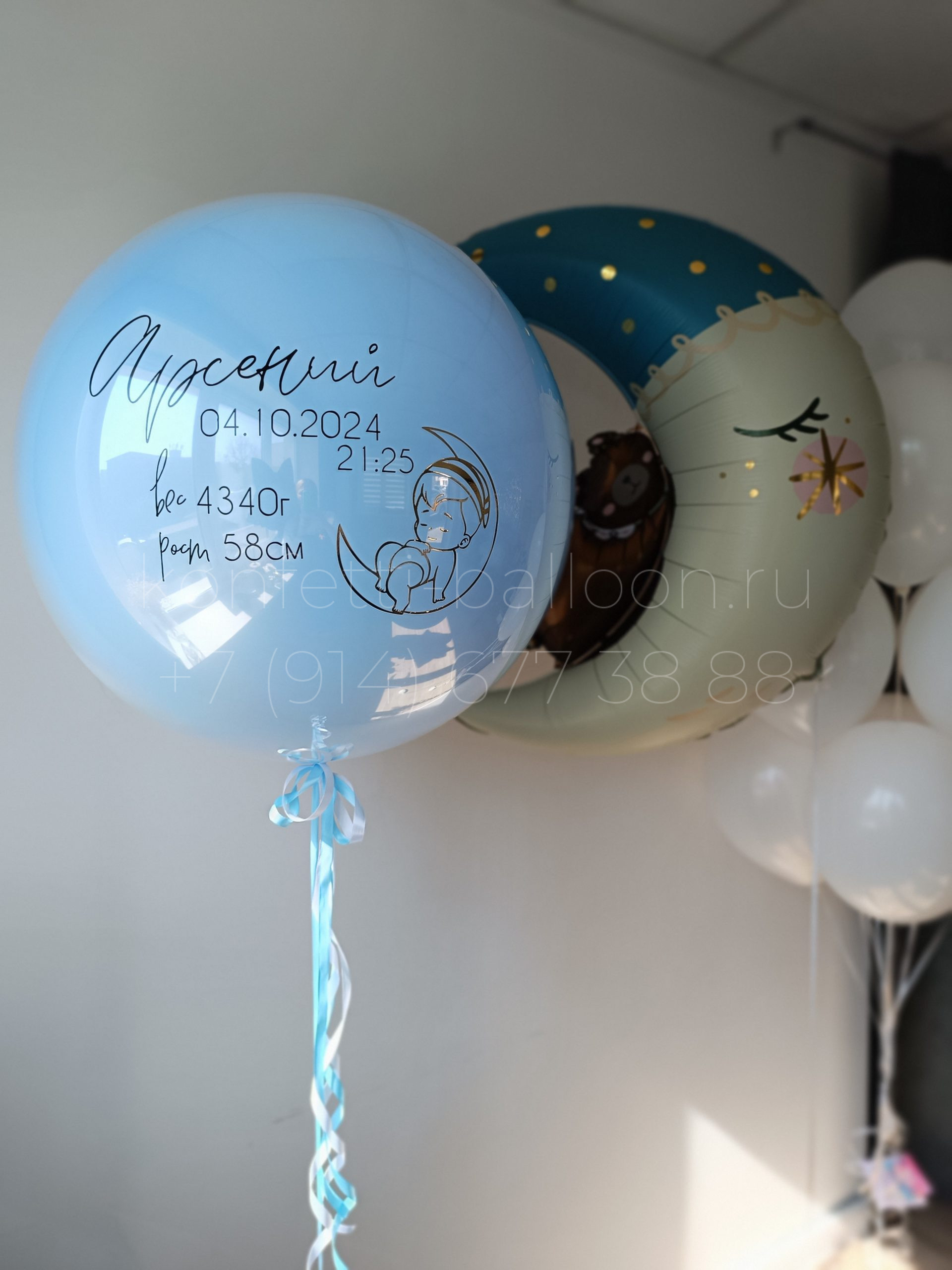Шар гигант 60-65 см в стеклянной технике с индивидуальной надписью/метрикой