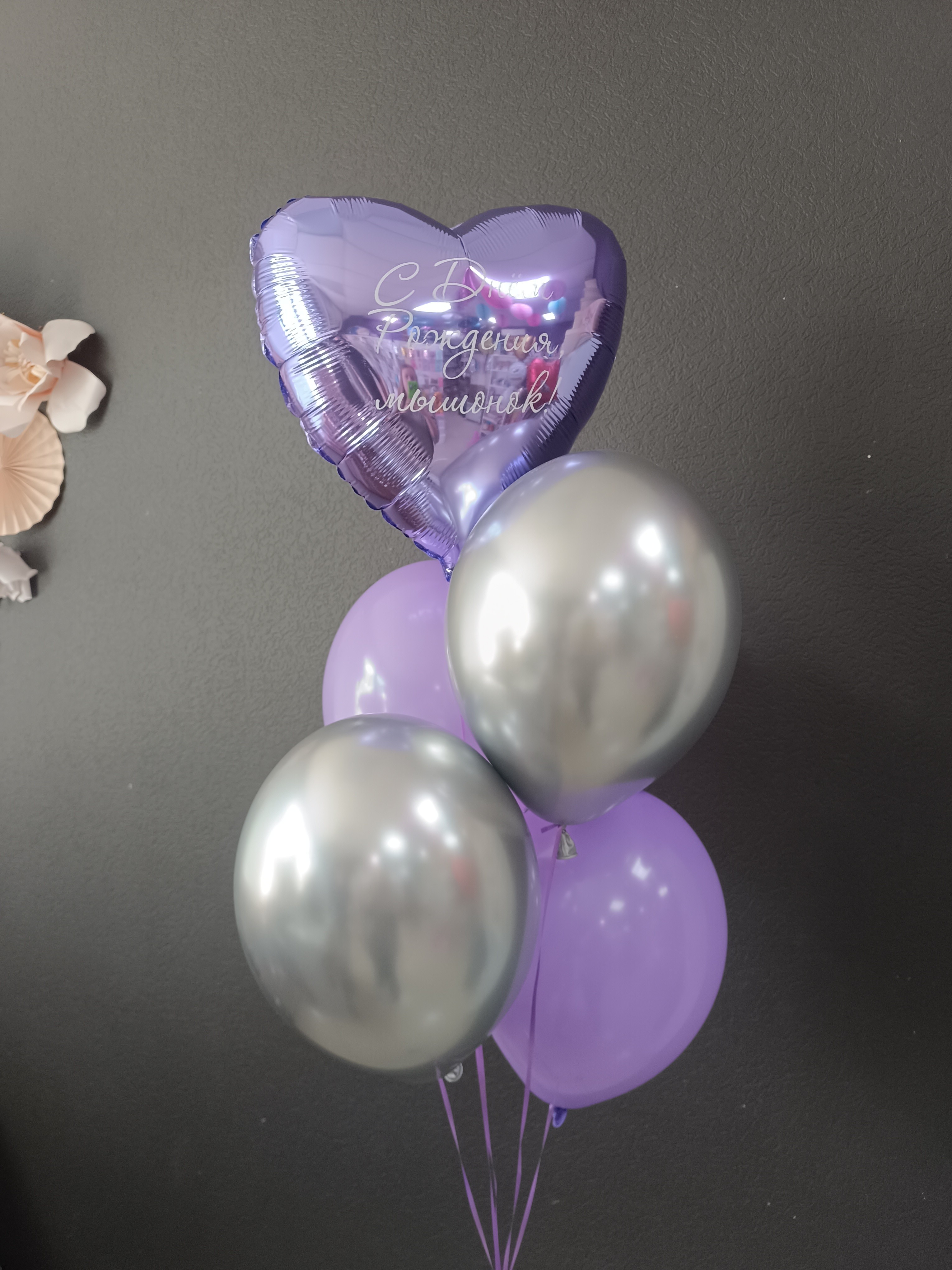Композиция из гелиевых шаров с сердечком с надписью для девочки, девушки