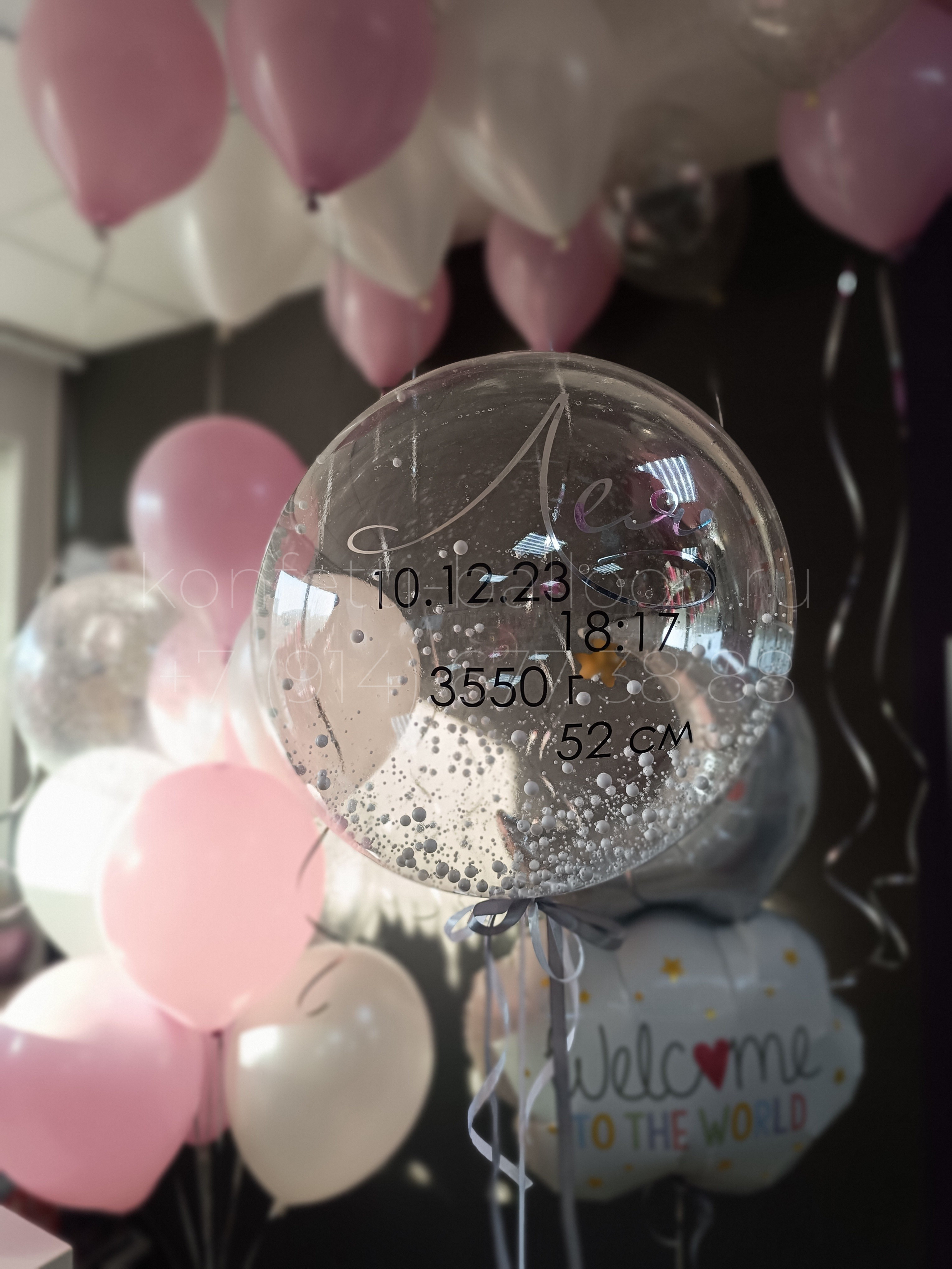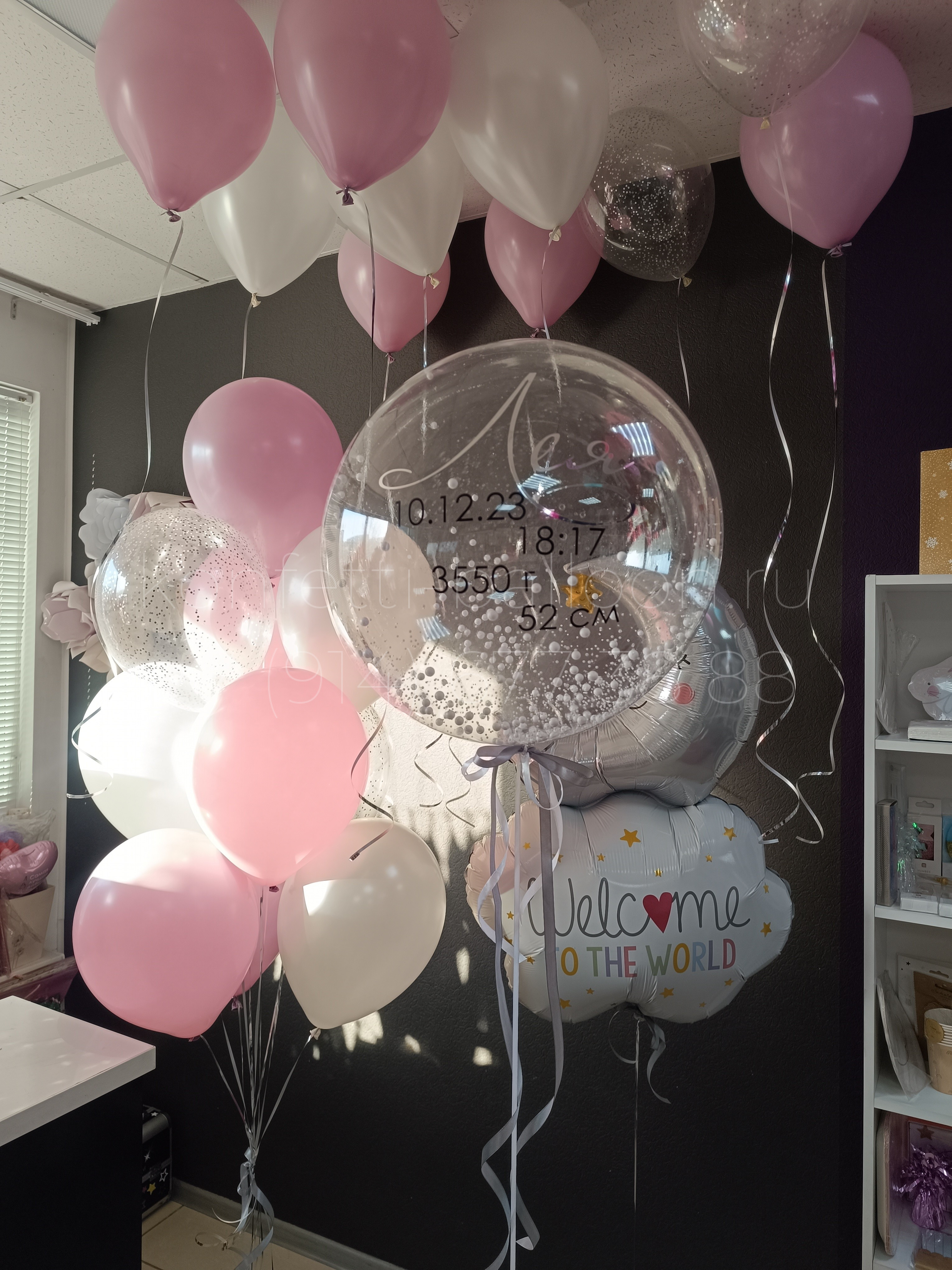 Композиция из гелиевых шаров на выписку из роддома