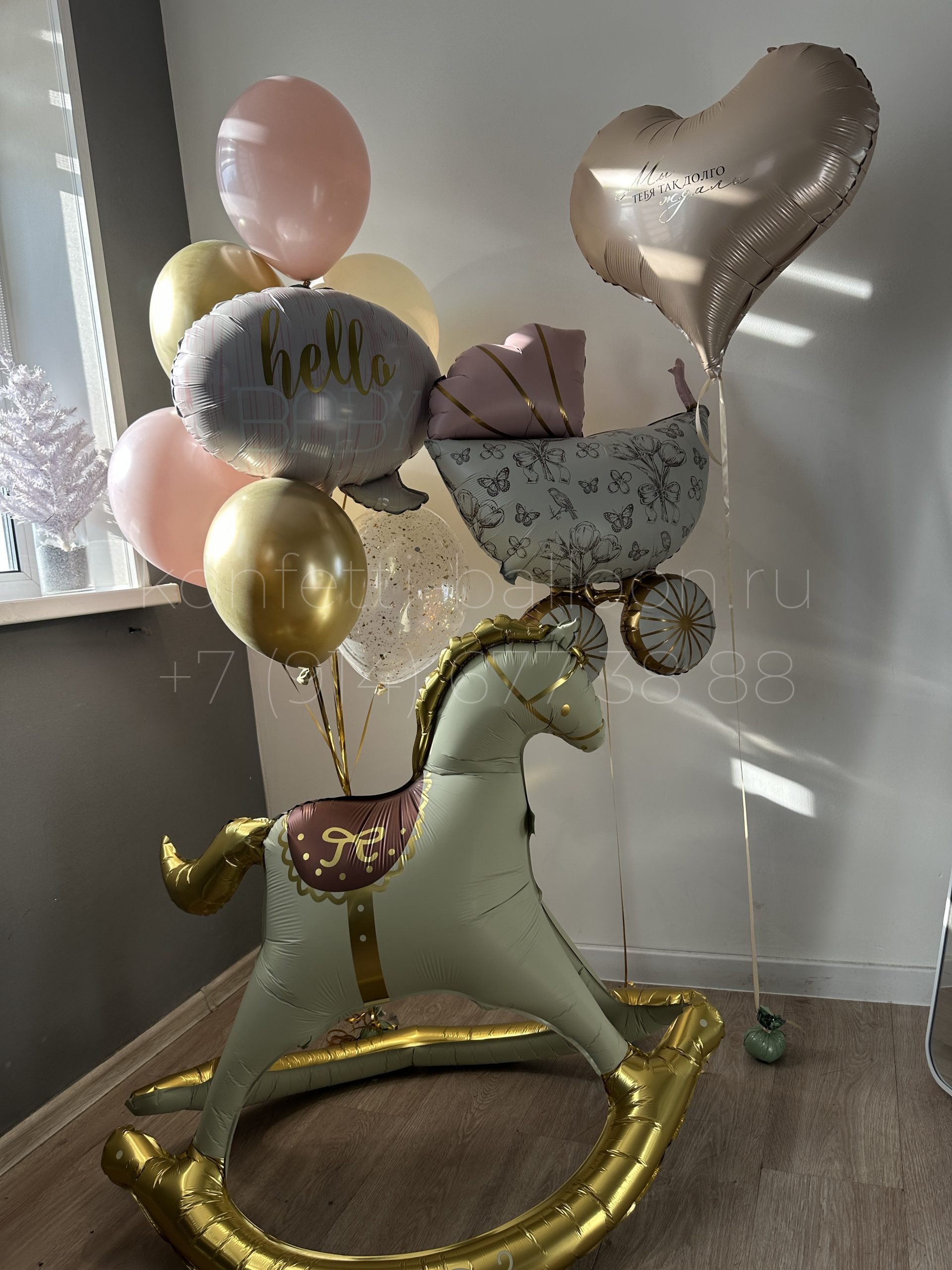 Композиция из гелиевых шаров на выписку из роддома