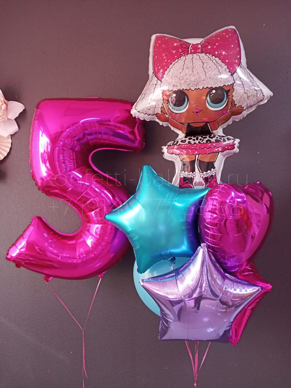 Композиция из гелиевых шаров с куклой LOL для девочки