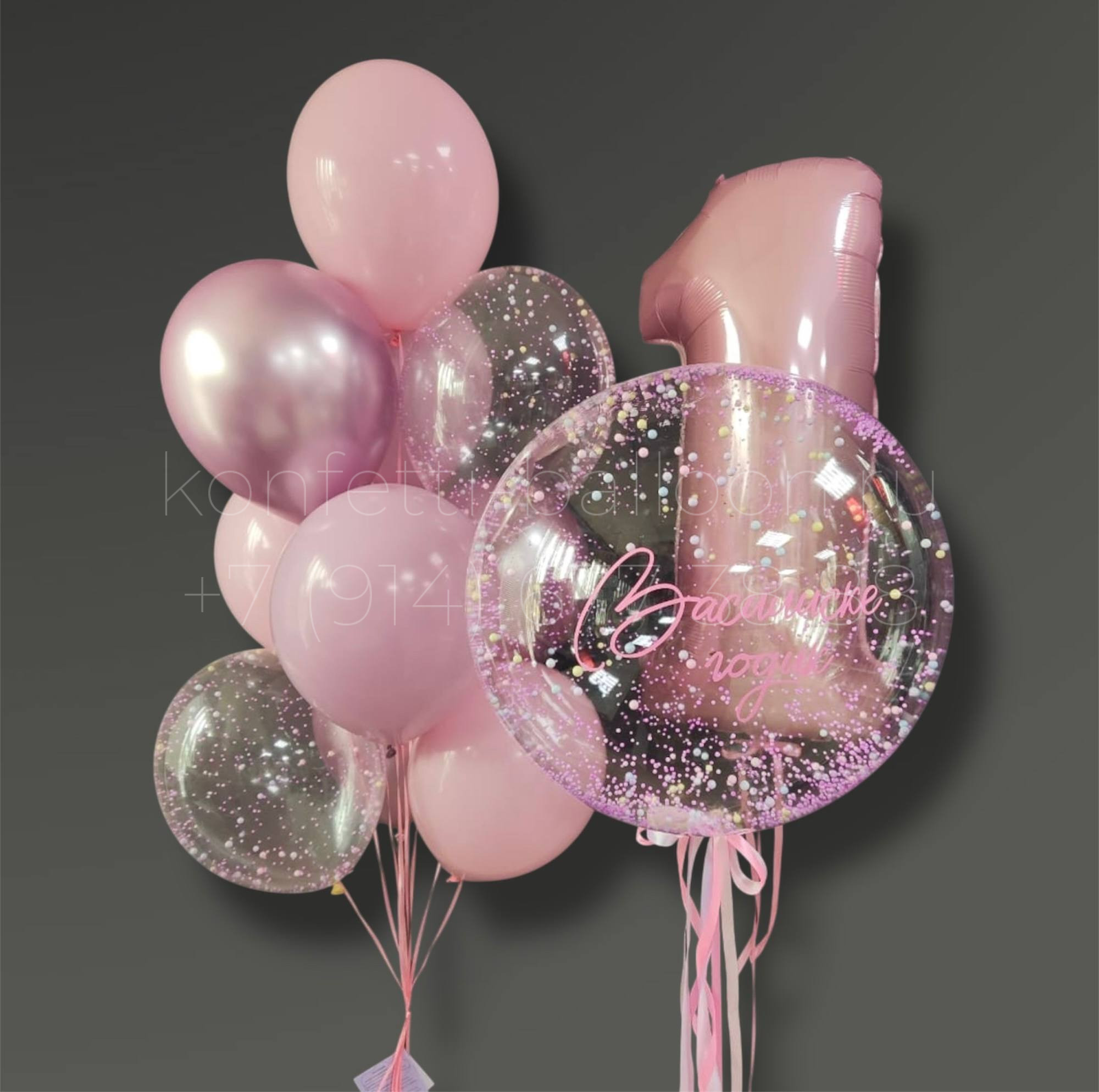 В состав «Композиция из гелиевых шаров на 1 годик для девочки» входит: